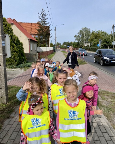 W tym tygodniu Bratki spacerowaĹy po Ostrowie Wielkopolskim. PoszukiwaliĹmy poznane znaki drogowe, jak rĂłwnieĹź bezpieczne przejscie dla pieszych, nie jest nam obce. Celem gĹĂłwnym byĹo rozwijanie znajomoĹci zasad ruchu drogowego dla pieszych.)