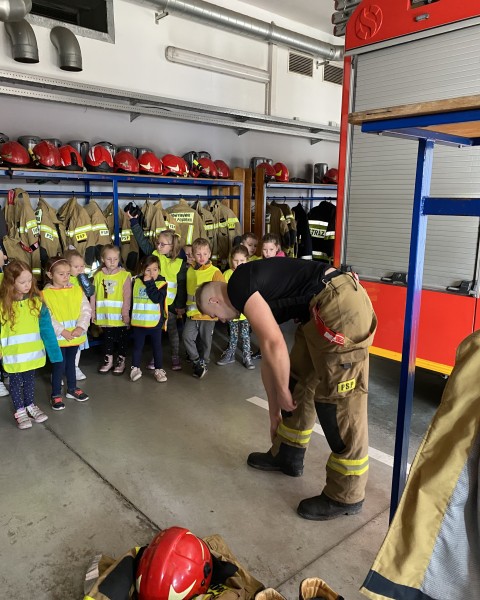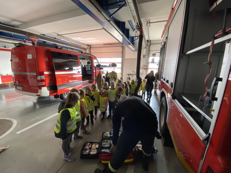 DziÄki ĹźyczliwoĹci PanĂłw StraĹźakĂłw przedszkolaki mogĹy z bliska obejrzeÄ samochody i sprzÄt poĹźarniczy. W trakcie rozmowy ze straĹźakami dowiedziaĹy siÄ duĹźo o trudnej, odpowiedzialnej i niebezpiecznej pracy. ZrozumiaĹy, Ĺźe straĹźak pomaga nie tylko w czasie poĹźaru, ale bierze rĂłwnieĹź udziaĹ w akcjach ratowniczych np. w czasie wypadku drogowego. Dzieci miaĹy moĹźliwoĹÄ obserwacji zjazdu straĹźakĂłw do akcji po metalowej rurze. Z wycieczki przedszkolaki wrĂłciĹy peĹne niezapomnianych wraĹźeĹ i wspomnieĹ.