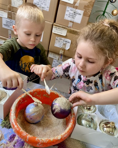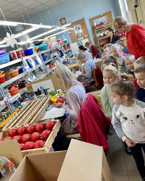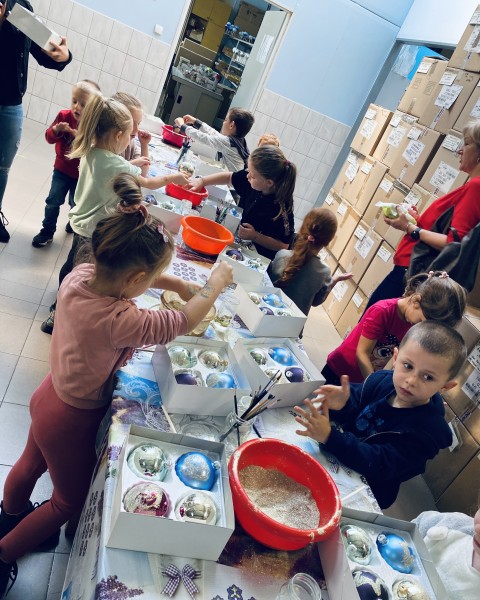cych tam zdolnych paĹ, ktĂłre wĹasnorÄcznie zdobiĹy bombki. Jednak najwaĹźniejszym punktem wycieczki byĹy warsztaty z mnĂłstwem brokatu.