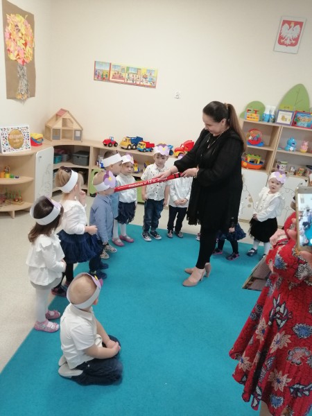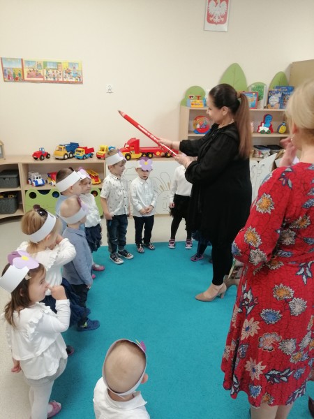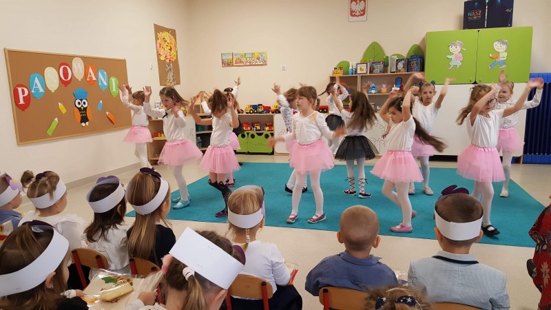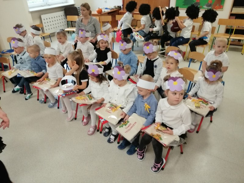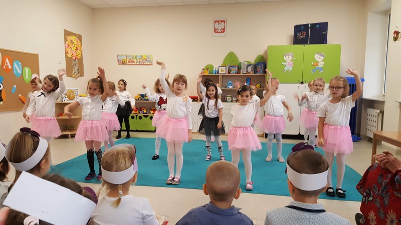 Dnia 4 listopada w naszej grupie miało miejsce bardzo ważne wydarzenie. Zostaliśmy prawdziwymi Przedszkolakami! Maluszki na tę okazję przygotowały wierszyki, piosenki oraz taniec. Specjalnie dla nas wystąpiła także najstarsza grupa w przedszkolu- Stokrotki- przygotowali oni wspaniałe układy taneczne. Na koniec Pani Dyrektor wraz z Panią Wicedyrektor pasowały każdego z Bratków na Przedszkolaka.