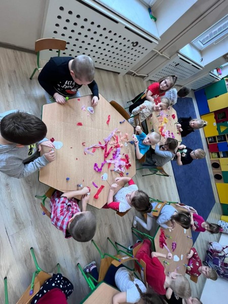 RozmawialiĹmy o genezie walentynek, zwyczajach w innych krajach i o tym, jak obecnie wyglÄ dajÄ walentykowe zwyczaje. Praca plastyczna pochĹonÄĹa nas na dĹuĹźszy czas ;)