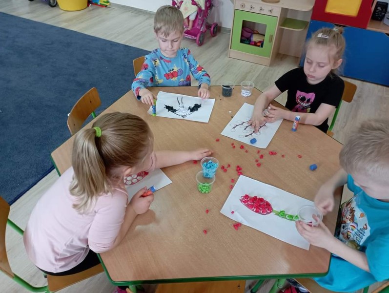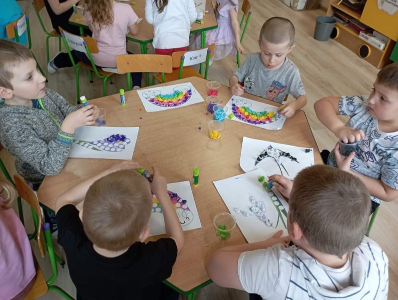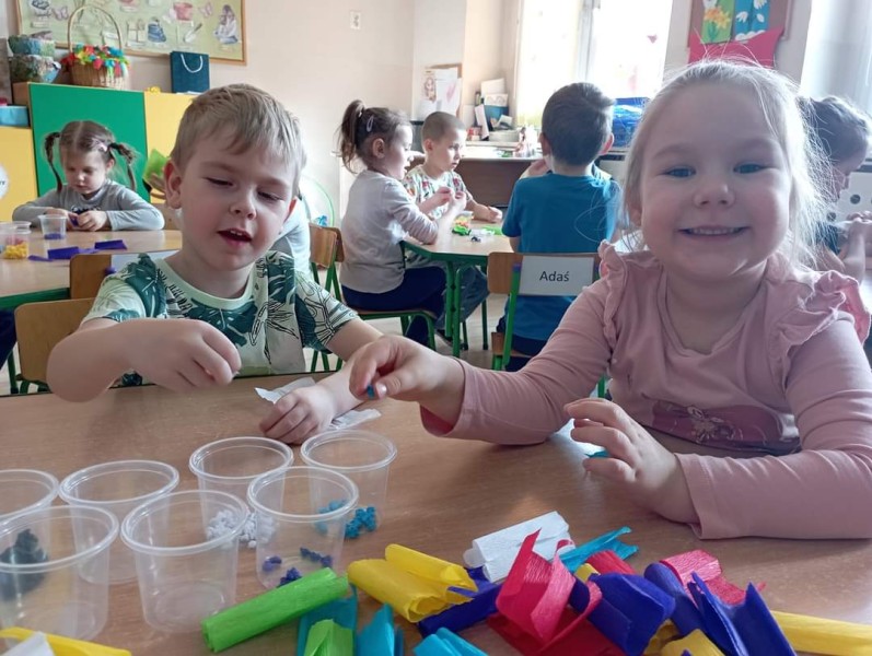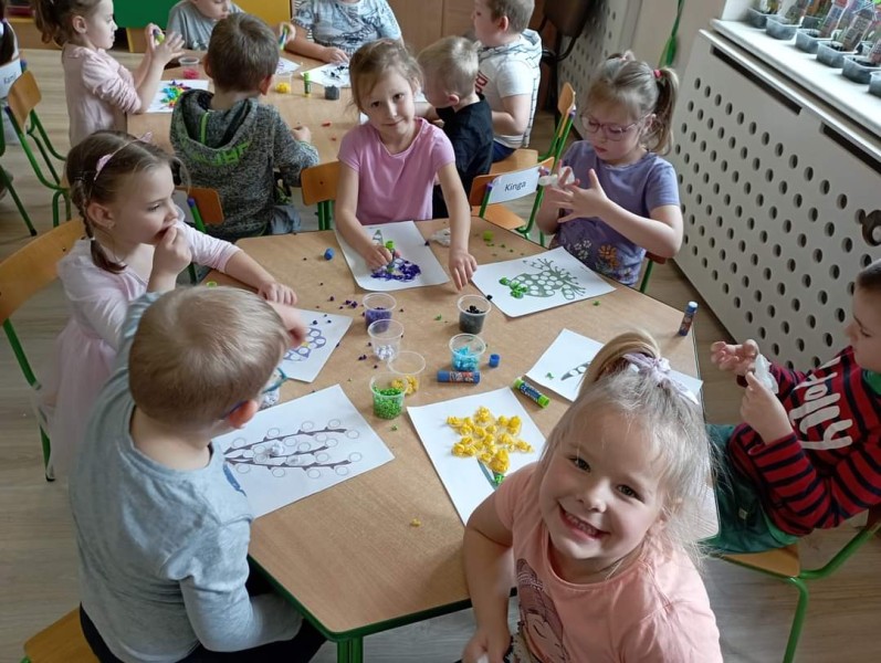 Podczas wspaniaĹej zabawy, dzieci doskonaliĹy koordynacjÄ wzrokowo-ruchowÄ oraz motorykÄ maĹÄ , w szczegĂłlnoĹci wzmacniaĹy miÄĹnie paluszkĂłw ;)