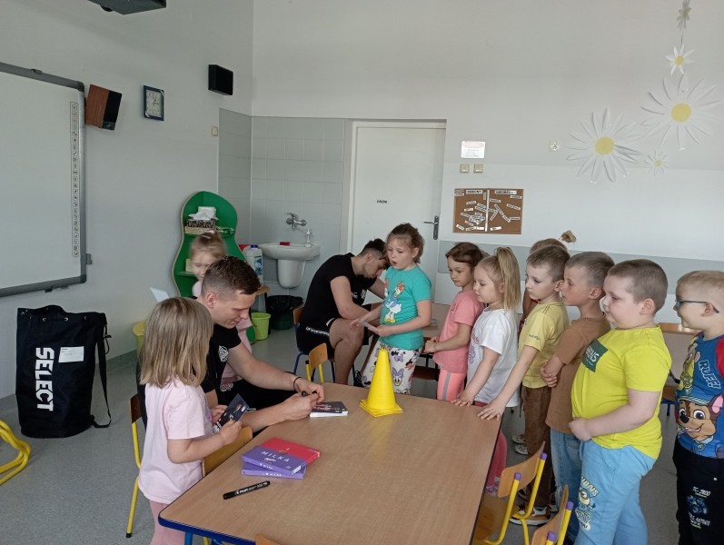 Podczas spotkania dzieci miaĹy moĹźliwoĹÄ poznaÄ specyfikÄ zespoĹowej dyscypliny sportu jakÄ jest piĹka rÄczna. Panowie opowiedzieli dzieciom jak wyglÄ da prawdziwy mecz, ilu zawodnikĂłw znajduje siÄ na boisku, a takĹźe odpowiadali na liczne, nurtujÄ ce dzieci pytania đ Po wspĂłlnej rozgrzewce, dzieci z ogromnÄ radoĹciÄ pokonywaĹy tor przeszkĂłd, a takĹźe sprĂłbowaĹy swoich siĹ w rzutach na bramkÄ ;). Pod koniec spotkania byĹ czas na wspĂłlne pamiÄ tkowe zdjÄcie i autografy ;)