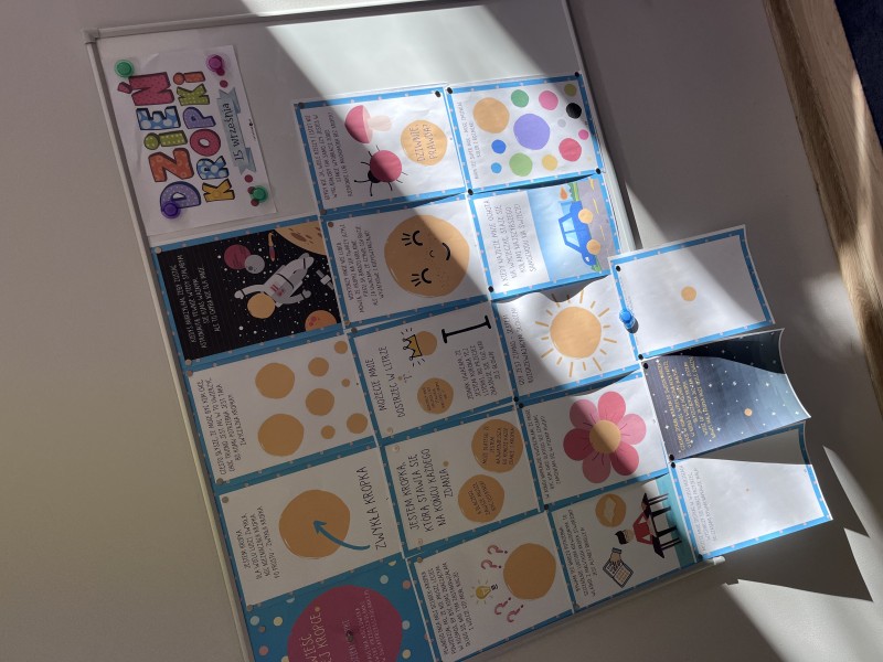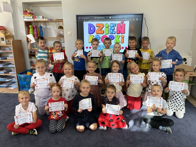 15 wrzeĹnia obchodzimy MiÄdzynarodowy DzieĹ Kropki, czyli ĹwiÄto kreatywnoĹci. Tego dnia grupa BratkĂłw podczas zajÄÄ obejrzaĹa historiÄ Vashti, ktĂłra byĹa artystkÄ , a jej kariera zaczÄĹa siÄ od kropki. DowiedzieliĹmy siÄ o roli kropki, np. w zdaniu, w literce "i" czy w alfabecie Braille'a. Na koniec kaĹźdy dostaĹ swojÄ kropkÄ lub kilka kropek i miaĹ za zadanie stworzyÄ coĹ z niczego. CaĹoĹÄ zwieĹczyliĹmy wystawÄ prac i wrÄczeniem dyplomĂłw.