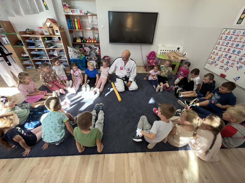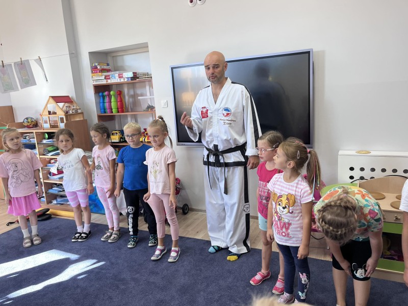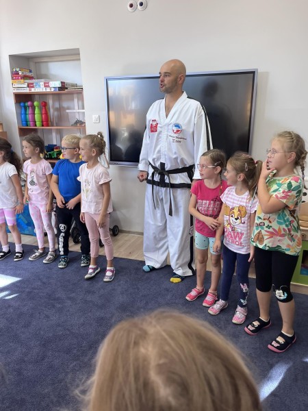 21 wrzeĹnia w naszym przedszkolu odbyĹy siÄ zajÄcia pokazowe z taekwon-do. ZajÄcia prowadziĹ pan Mariusz Dumitrescu, ktĂłry zaraziĹ nas wszystkich swoim poczuciem humoru oraz pokazaĹ jak wyglÄ dajÄ zabawy i treningi w szkole Taekwon-do. đĽđ