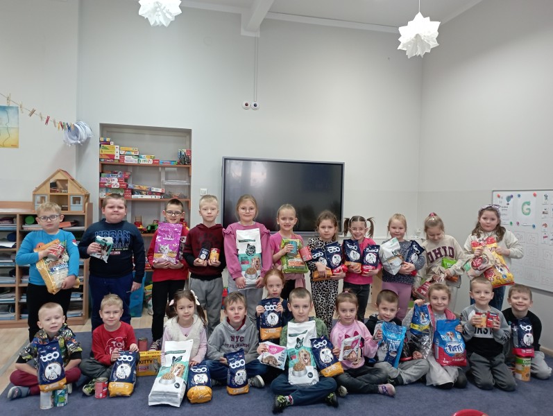 Serdeczne podziÄkowania dla dzieci i rodzicĂłw za udziaĹ w zbiĂłrce karmy dla zwierzÄ t ze schroniska w Wysocku Wielkim â¤ď¸