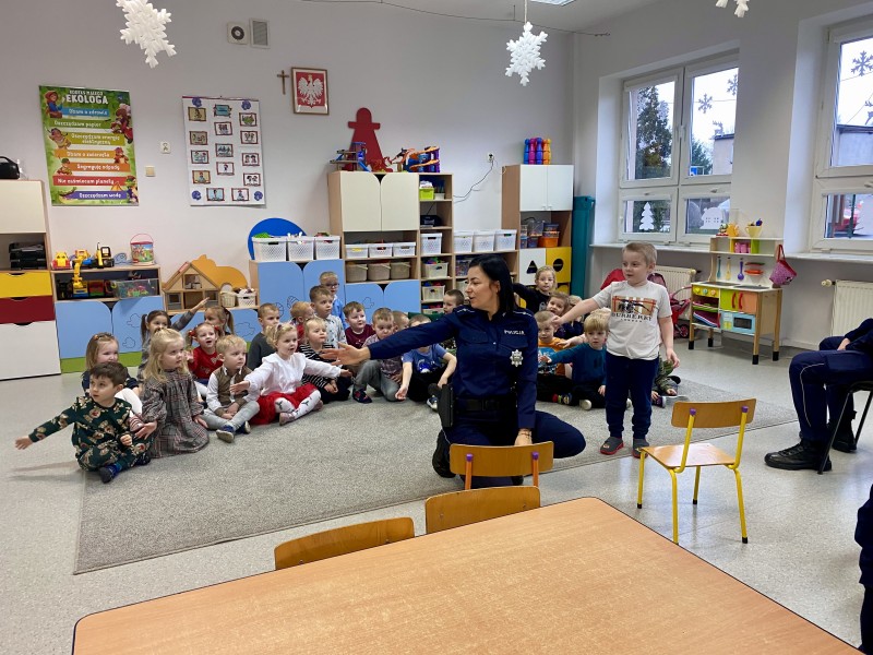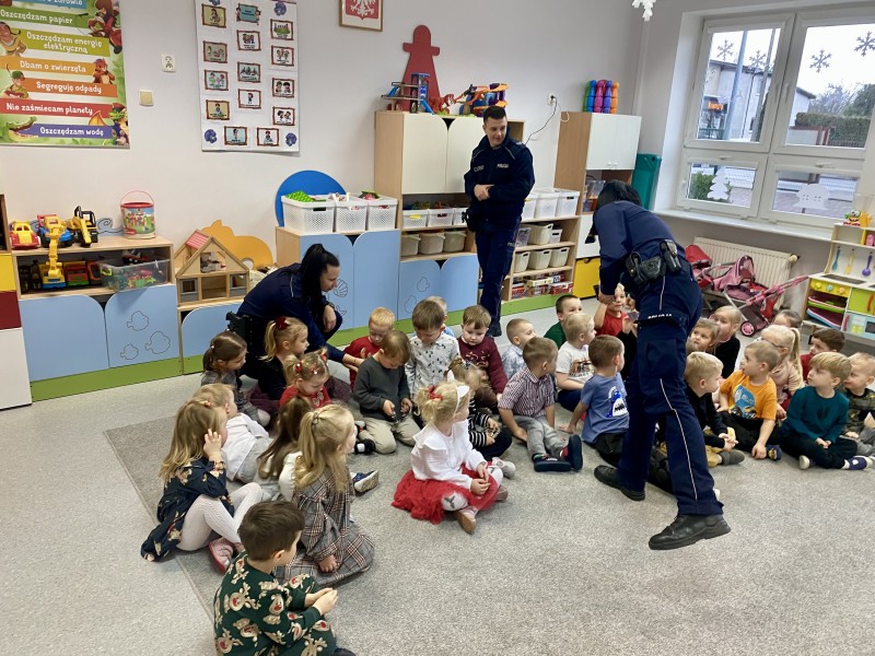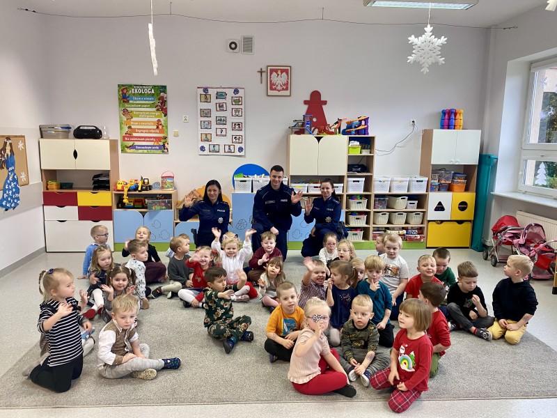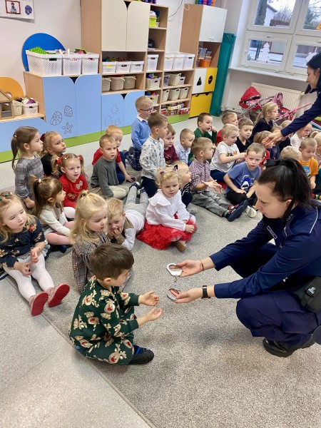 GĹĂłwnym celem wizyty byĹo przypomnienie podstawowych zasad bezpieczeĹstwa oraz zapoznanie z zawodem policjanta.