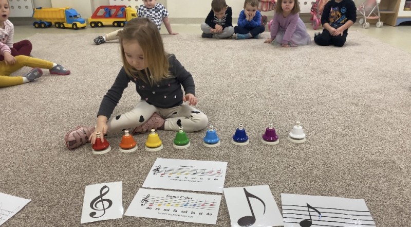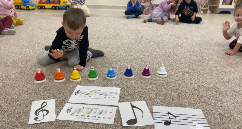 Bratki poznaĹy nutki i wygrywaĹy dĹşwiÄki gamy C-dur.