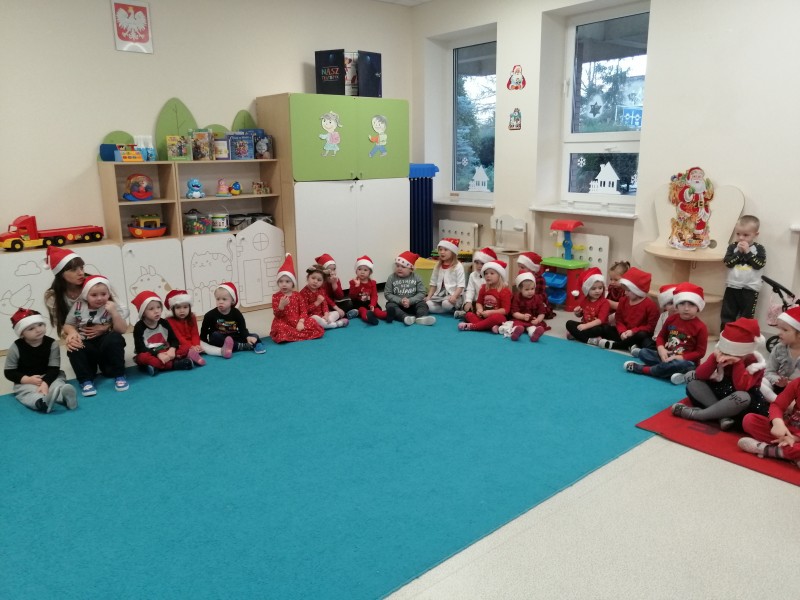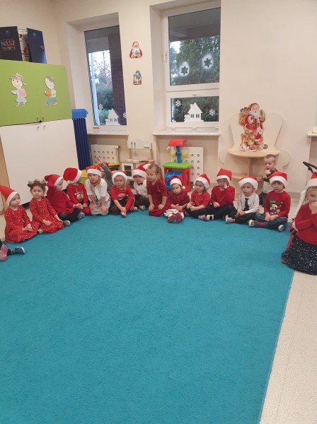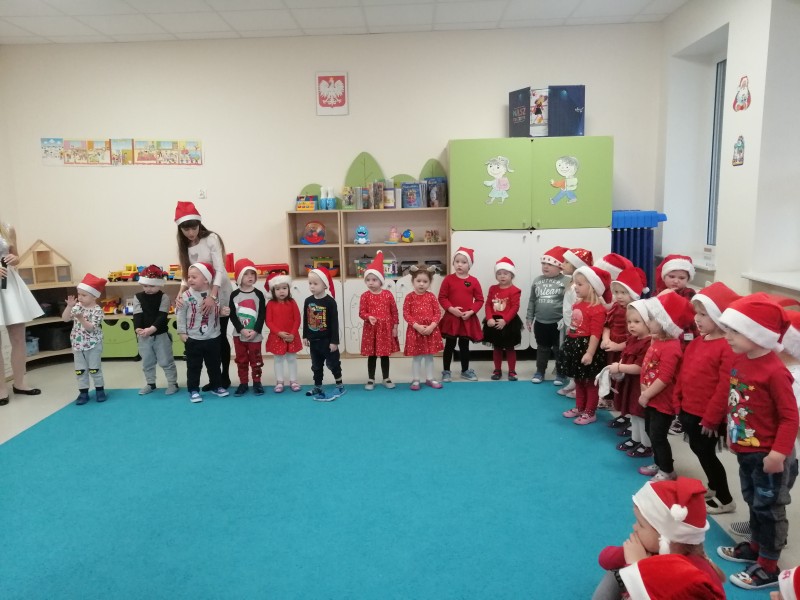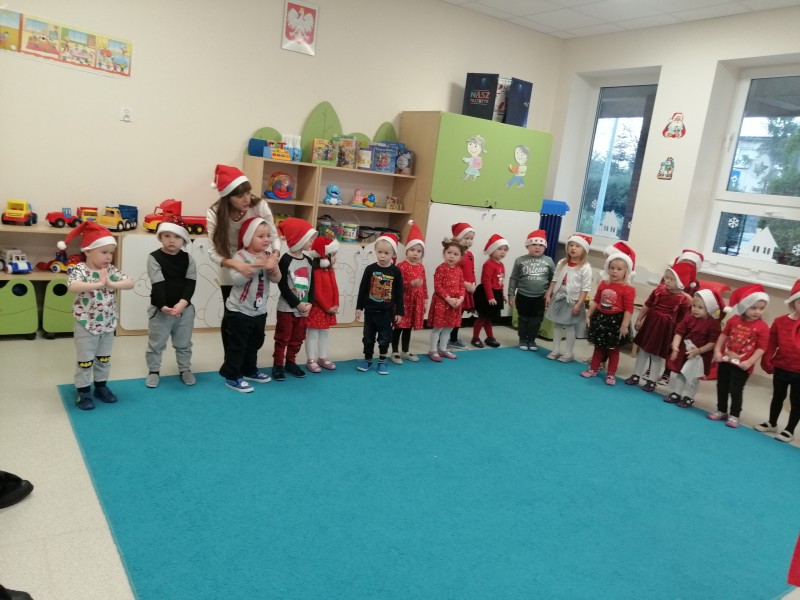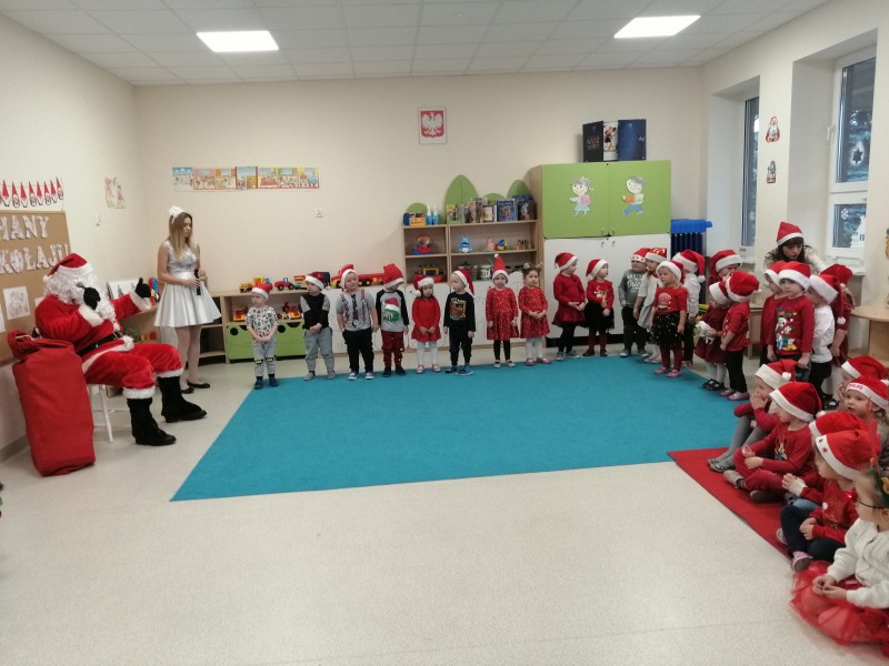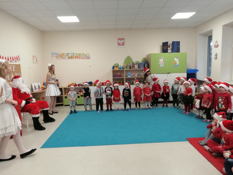 czekaĹy na przybycie tego waĹźnego GoĹcia. WczeĹniej wykonywaĹy prace plastyczne, uczyĹy siÄ piosenek, ubieraĹy choinkÄ i przystrajaĹy salÄ.