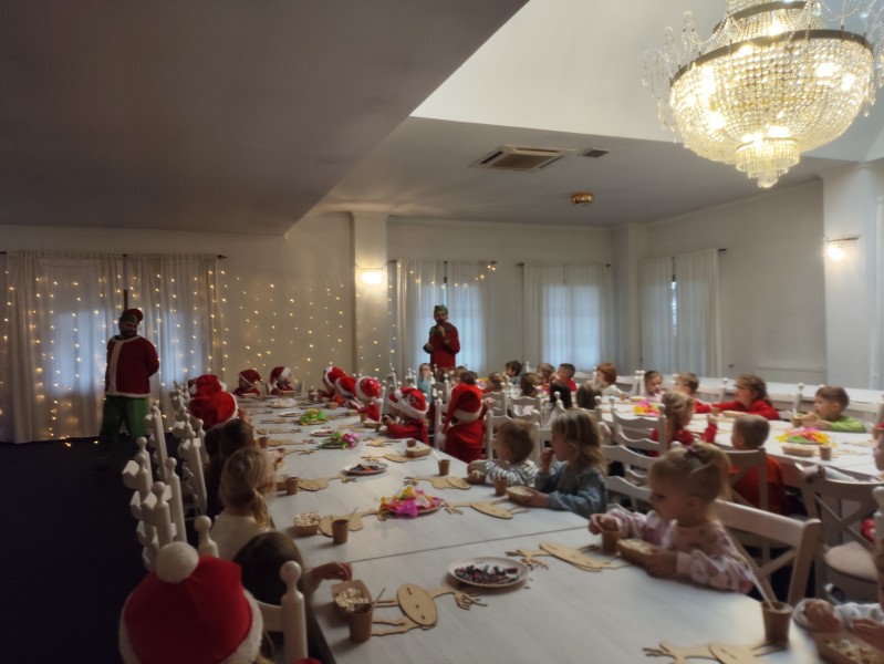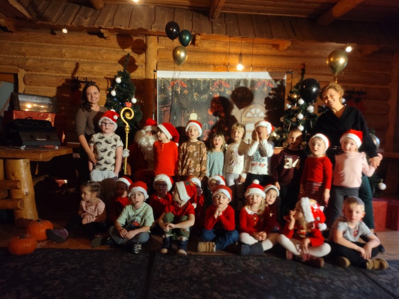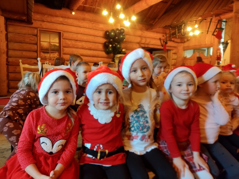 9.12.2025 najmłodsze grupy z naszego przedszkola - Stokrotki i Bratki wybrały się na wycieczkę do magicznej Chatki Świętego Mikołaja.