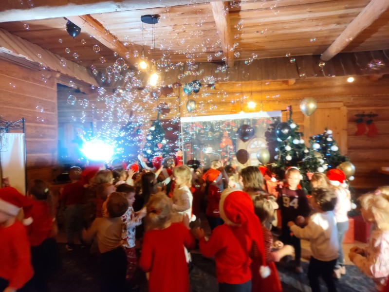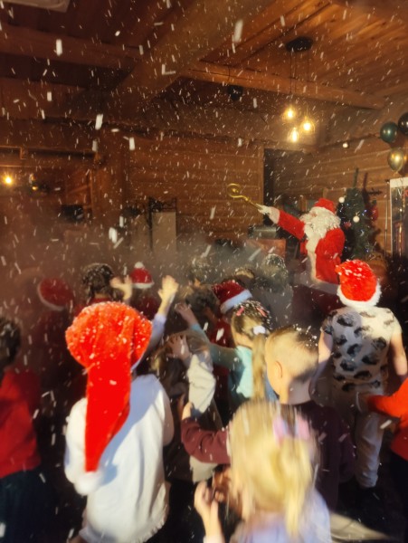 Radosne tańce z Mikołajem i Elfem wśród wirujących baniek mydlanych i płatków śniegu sprawiły, że każdy poczuł się częścią zimowej opowieści ❄️.
