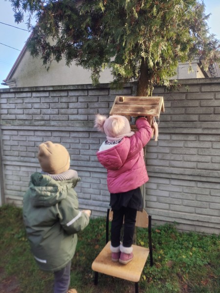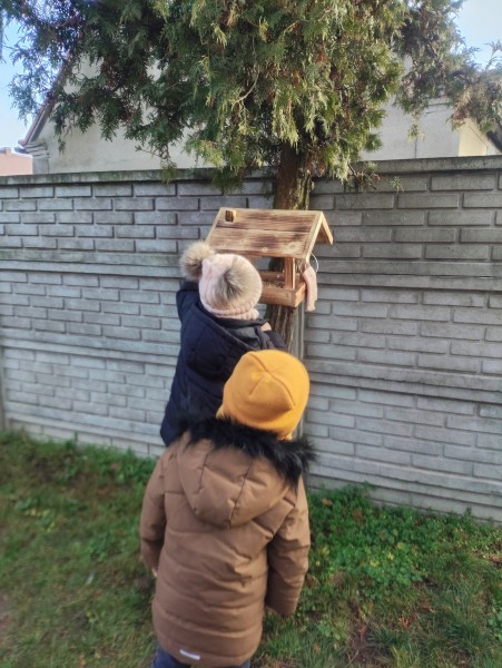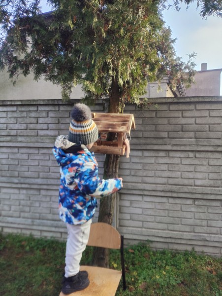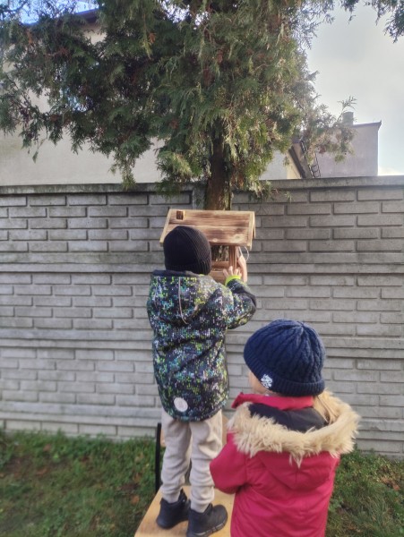15 zadanie z kalendarza adwentowego wykonane ;) Nasze Bratki uzupeĹniĹy ziarenka w przedszkolnym karmniku.