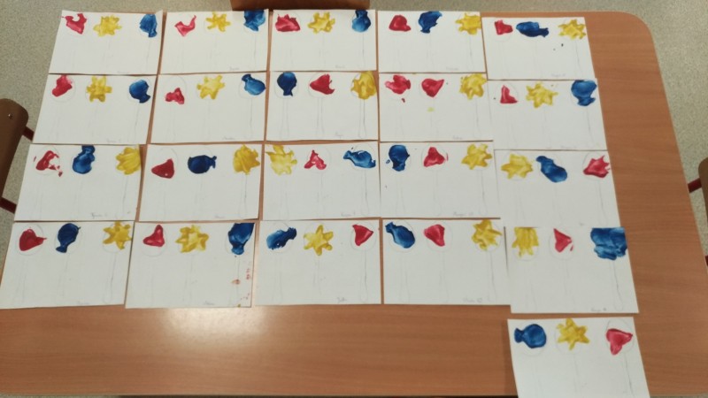 W miniony piÄ tek dzieci przy pomocy stempelkĂłw z ziemniakĂłw i farb ozdabiaĹy narysowane ĹyĹźki. KaĹźde nowe doĹwiadczenie daje dzieciom duĹźo radoĹci. Maluszki bardzo starannie wykonywaĹy swoje prace.