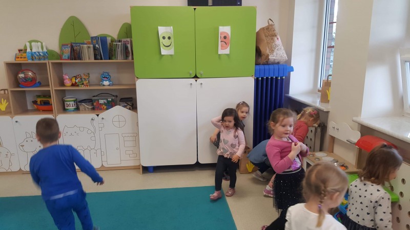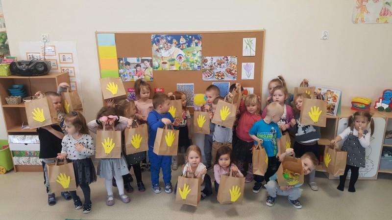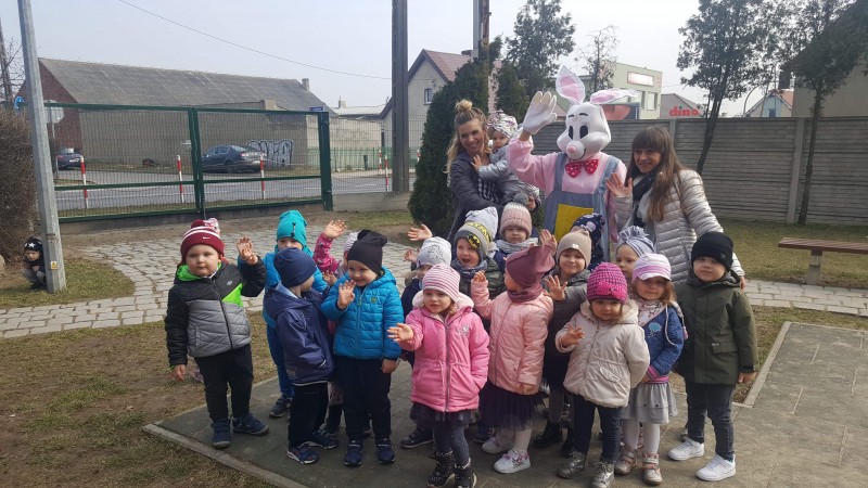 W piÄ tek tuĹź po Ĺniadanku dzieci z wielkim przejÄciem wyglÄ daĹy przez okna w poszukiwaniu zajÄ czka.Wielkanocnego przyjaciela spotkaĹy na placu zabaw.Maluszki z ogromnÄ radoĹciÄ powitaĹy zajÄ czka,wyrecytowaĹy wiosenny wierszyk,a nastÄpnie zapozowaĹy do wspĂłlnego zdjÄcia.To nie koniec atrakcjiđ gdy dzieci poĹźegnaĹy zajÄ czka przeszĹy do sali,by odszukaÄ w niej prezentĂłw,ktĂłre zostawiĹ dla nich zajÄ czek.UĹmiechy przez czas nie schodziĹy z twarzy dzieci.