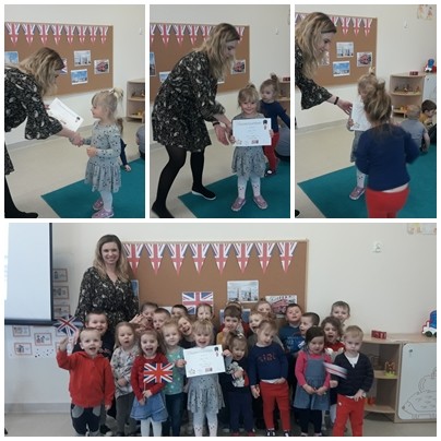 26 kwietnia w naszym przedszkolu obchodziliĹmy DzieĹ JÄzyka Angielskiego. Dzieci w tym dniu przyniosĹy do przedszkola flagi Agnlii, obejrzaĹy krĂłtki filmik o zabytkach znajdujÄ cych siÄ w Londynie. Maluszki chetnie braĹy udziaĹ w zabawach ruchowych, odpowiadaĹy na pytanie, zagadki, na koniec wspĂłlnie uĹoĹźyliĹmy puzzle- Big Ben