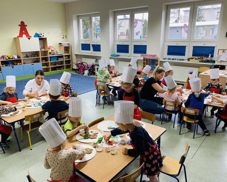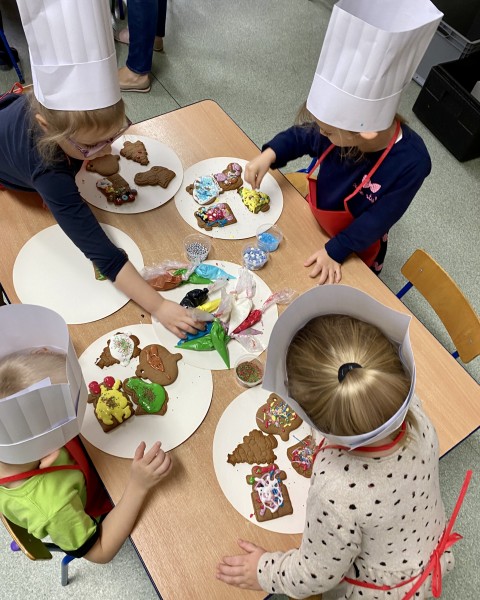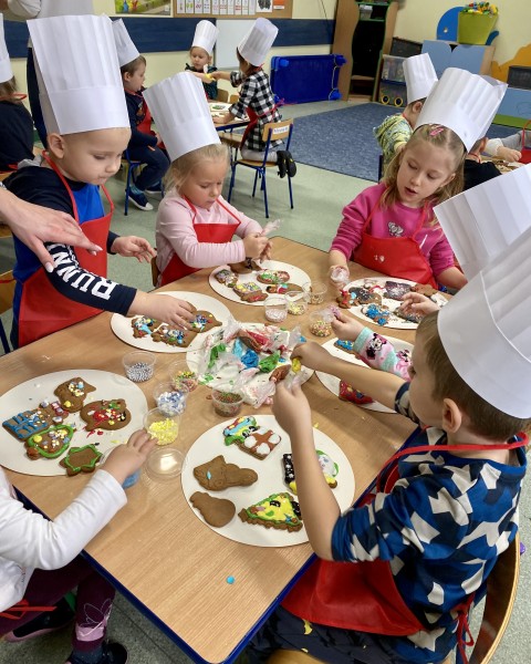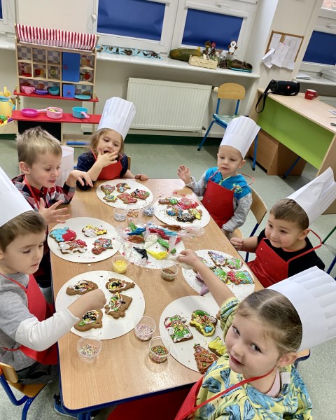 teczny. Dzieci lukrowaĹy i przyzdabiaĹy pierniczki. Zabawa byĹa wyĹmienita i bardzo sĹodka.