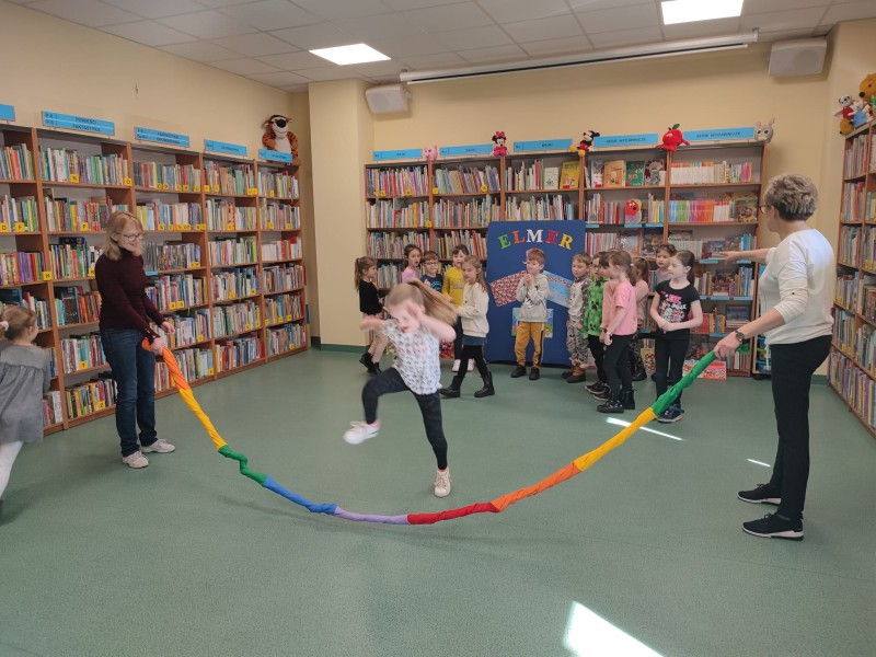 SĹoĹ ELMER zaprosiĹ dzieci do wspĂłlnych zabaw ruchowo-muzycznych i zrÄcznoĹciowych, opartych na czytanych tekstach. UzupeĹnieniem zajÄÄ byĹo wykonanie portretĂłw bohatera. Na zakoĹczenie spotkania kaĹźdy uczestnik otrzymaĹ z rÄ k ELMERA pamiÄ tkowy dyplom.