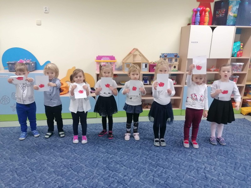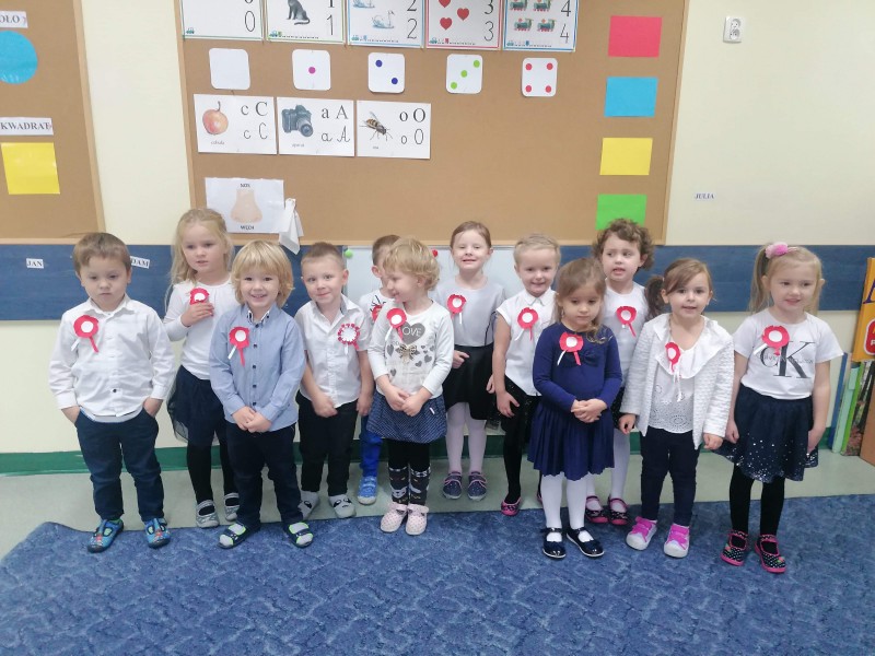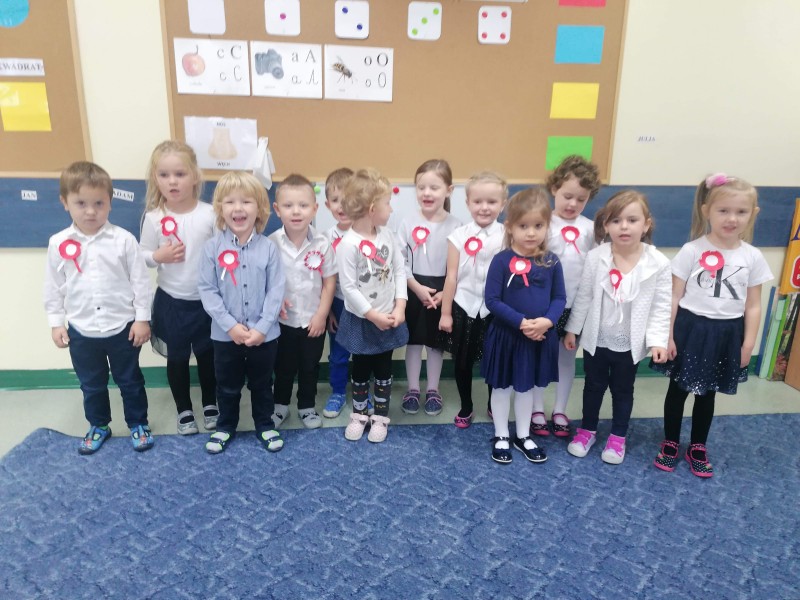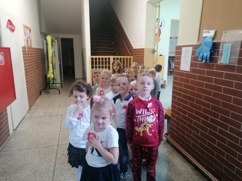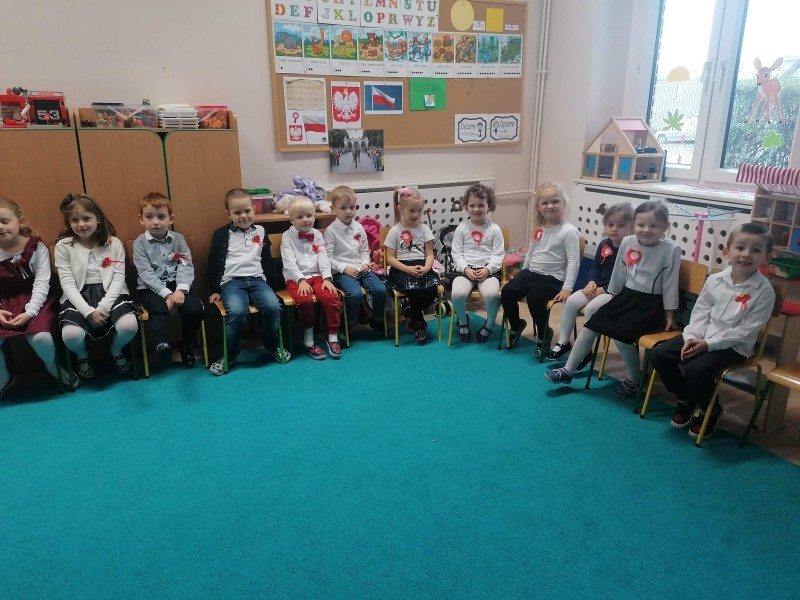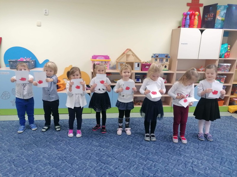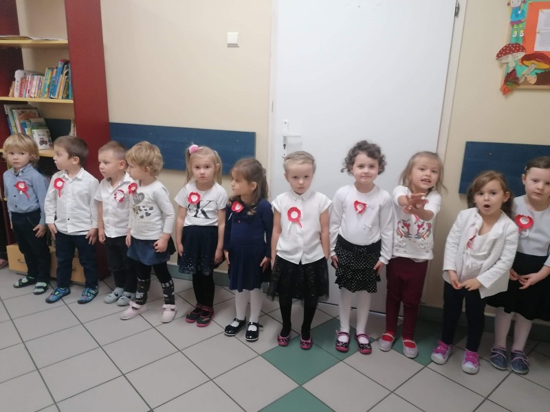 W ĹrodÄ - 11 listopada - przypada ĹwiÄto NiepodlegĹoĹci, ktĂłre jest wyrazem radoĹci PolakĂłw, gdyĹź po 123. latach zaborĂłw nasza Ojczyzna w 1918 r. znĂłw staĹa siÄ wolna. Tym samym grupa FIOĹKI wraz z innymi grupami, aby uczciÄ ĹwiÄto NiepodlegĹoĹci odĹpiewaĹa Hymn Polski, a nastÄpnie oglÄ dneĹa krĂłtki film zwiÄ zany z tym ĹwiÄtem i wykonaĹa pracÄ plastycznÄ .