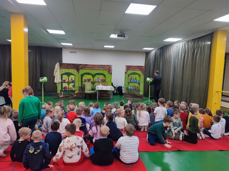 20 listopada w poniedziaĹek FIOĹKI uczestniczyĹy w spektaklu teatralnym pt. "Tajemniczy skarb" przygotowany przez aktorĂłw kaliskiego teatru WĹĂłczykij. Dzieci z duĹźym zaciekawieniem ĹledziĹy losy sprzedawczyni dla ktĂłrej skarbem byĹa zaczarowana ksiÄ Ĺźka, ktĂłrÄ dostaĹa od starszej ubogiej kobiety w zamian za koszyk z ĹźywnoĹciÄ . Na koniec przedstawienia aktorĂłw nagrodzono gromkimi brawami. DziÄkujemy za piÄknÄ bajkÄ!!! đ