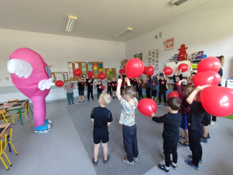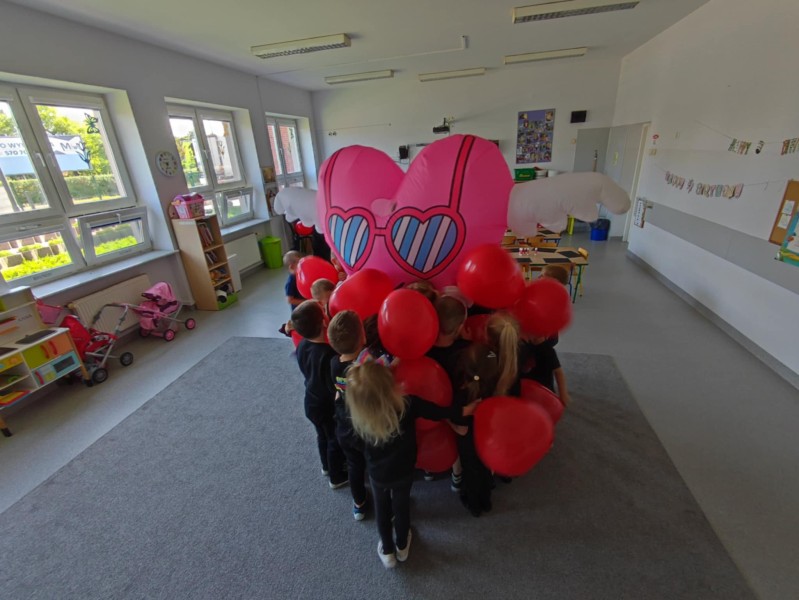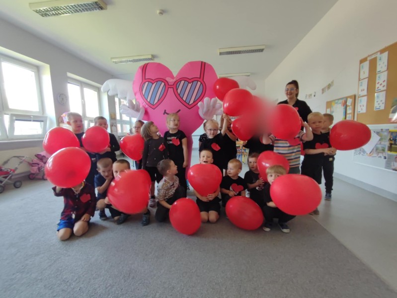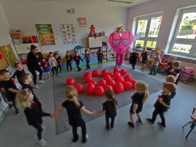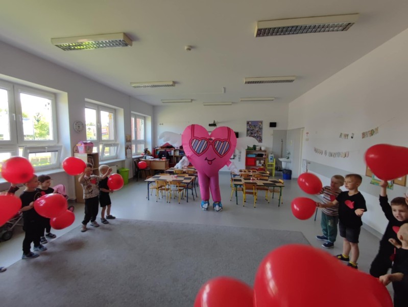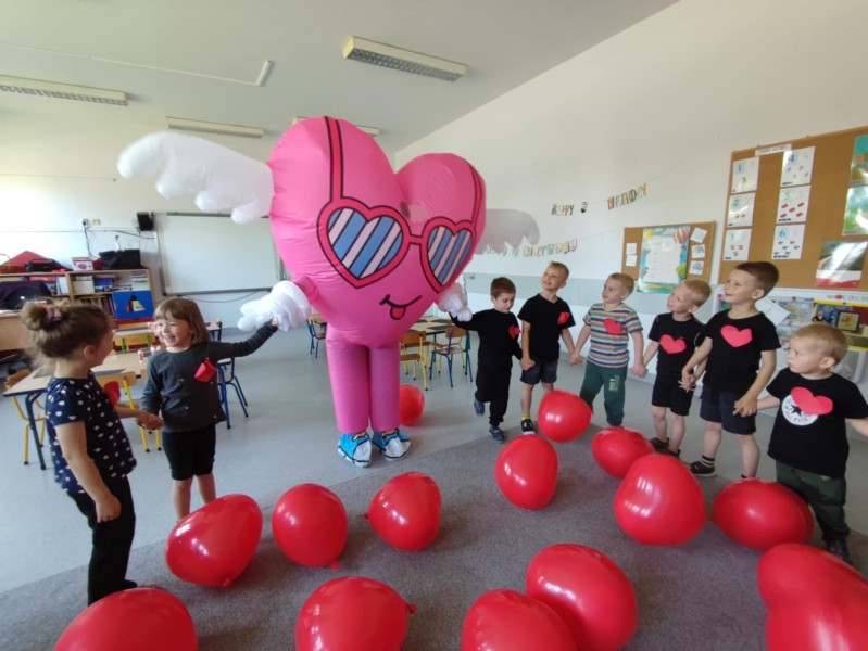 ZwieĹczeniem tego dnia byĹa duĹźa maskotka – gigancik: "Serduszko o imieniu Lovka, ktĂłra odwiedziĹa wszystkie grupy w przedszkolu.