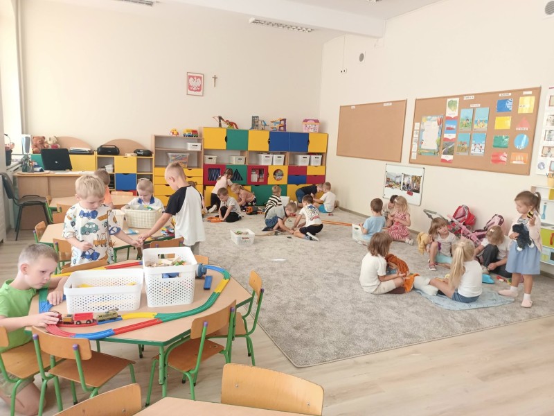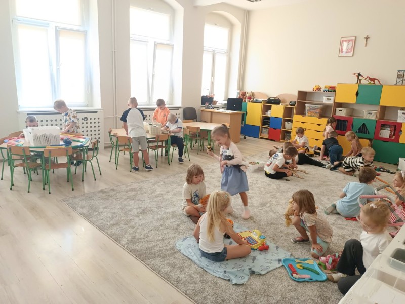 Nowa sala - ĹwieĹźo wymalowana, nowy piÄkny dywan, nowe zabawki. RadoĹÄ dzieci