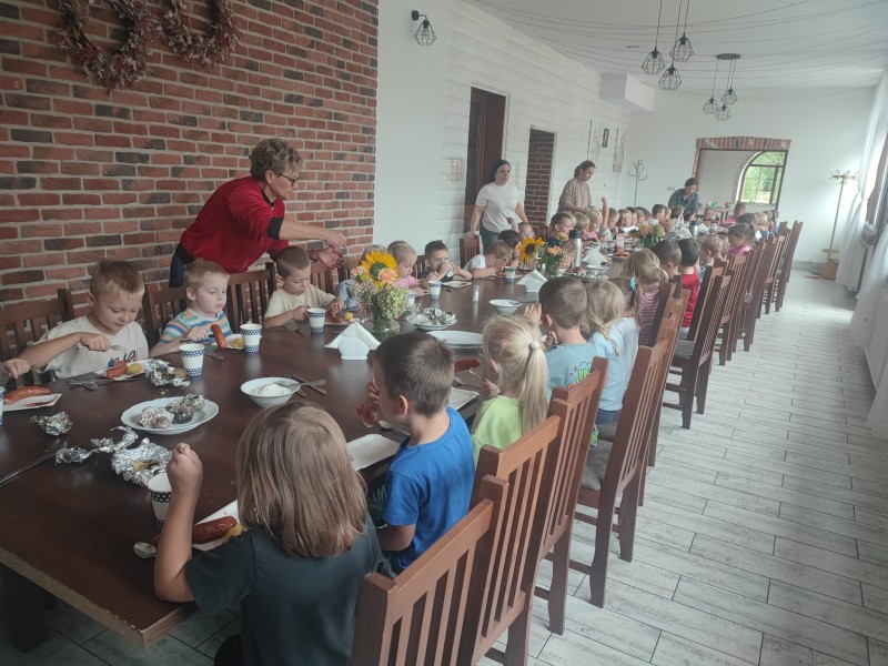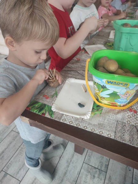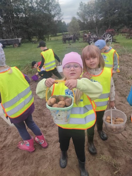 22 wrzeĹnia (poniedziaĹek) grupa „FioĹki” i grupa „Maczki” wybraĹy siÄ na wycieczkÄ do Chlebowej Chaty w Mikstacie-Komorowie, aby wspĂłlnie ĹwiÄtowaÄ DzieĹ Ziemniaka. Na poczÄ tek dzieci udaĹy siÄ na pole, gdzie samodzielnie zbieraĹy ziemniaki. KaĹźde z nich umieszczaĹo swoje zbiory w maĹym wiadereczku, ktĂłre po powrocie mogĹo zabraÄ do domu. KolejnÄ atrakcjÄ byĹo owijanie ziemniakĂłw w foliÄ i pieczenie ich w ognisku. Po wesoĹych zabawach na ĹwieĹźym powietrzu przyszedĹ czas na degustacjÄ przygotowanych smakoĹykĂłw. Przedszkolaki miaĹy okazjÄ sprĂłbowaÄ ziemniakĂłw z ogniska, gotowanych ziemniakĂłw, kieĹbasek, gziki i maseĹka, oraz swojskiego chleba.