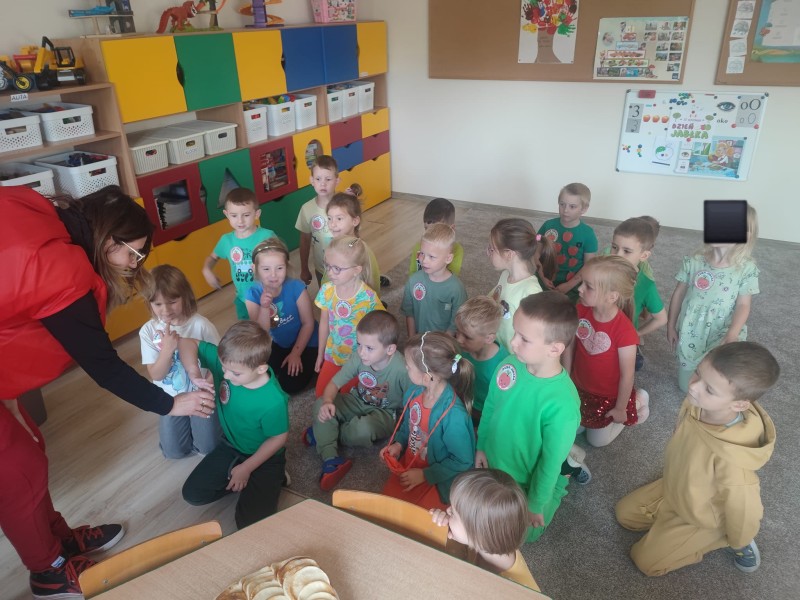 26 wrzeĹnia w naszym przedszkolu obchodziliĹmy DzieĹ JabĹka. Z tej okazji spotkaliĹmy siÄ z grupÄ Maczki, z ktĂłrÄ wspĂłlnie braliĹmy udziaĹ w róşnych konkurencjach sportowych z wykorzystaniem jabĹek. Dzieci poznaĹy znaczenie tego ĹwiÄta i dowiedziaĹy siÄ, dlaczego jabĹka sÄ tak waĹźne w naszej diecie.