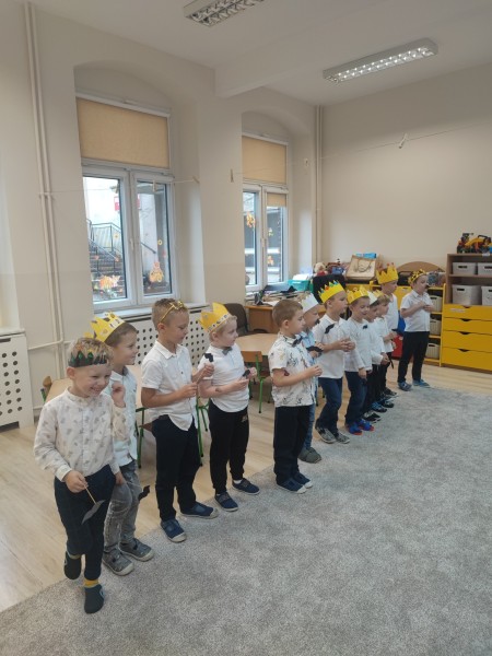 DziĹ w naszej grupie obchodziliĹmy DzieĹ ChĹopca. ChĹopcy przyszli ubrani jak prawdziwi dĹźentelmeni – w eleganckich strojach i z koronami na gĹowach. Dziewczynki wrÄczyĹy chĹopcom upominki, a same rĂłwnieĹź zostaĹy obdarowane drobnymi prezentami. Nie zabrakĹo wspĂłlnych taĹcĂłw, zabaw i radosnej atmosfery. Na pamiÄ
