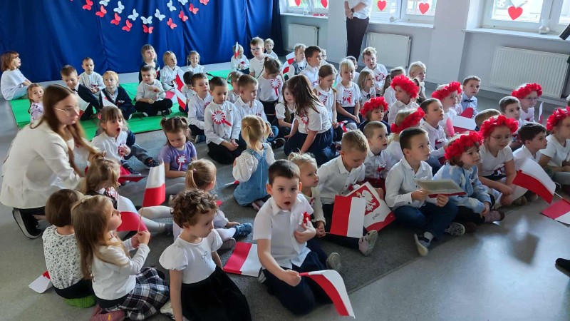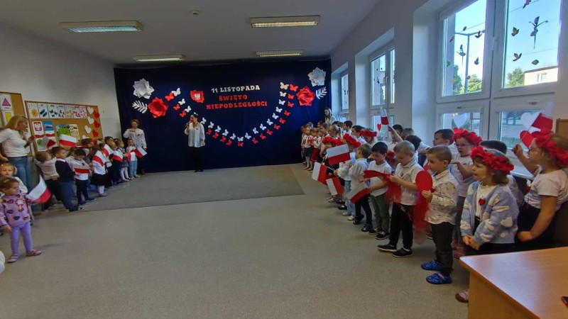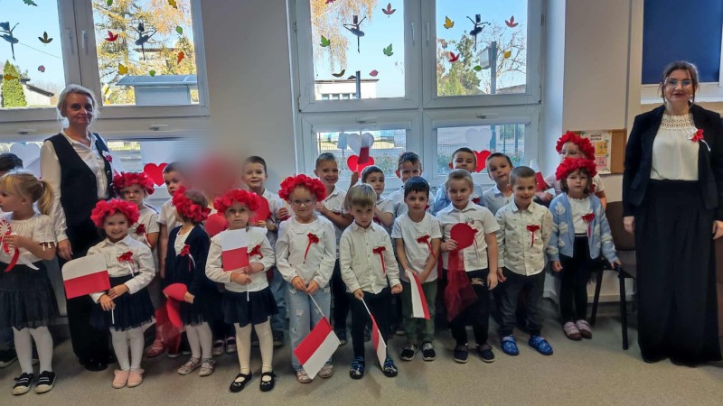 DziĹ, 7 listopada, w naszym przedszkolu obchodziliĹmy ĹwiÄto Odzyskania NiepodlegĹoĹci. O godzinie 11:11 caĹe przedszkole wraz z pracownikami uroczyĹcie odĹpiewaĹo hymn Polski. NastÄpnie kaĹźda z grup zaprezentowaĹa wiersze i piosenki o tematyce patriotycznej, wprowadzajÄ