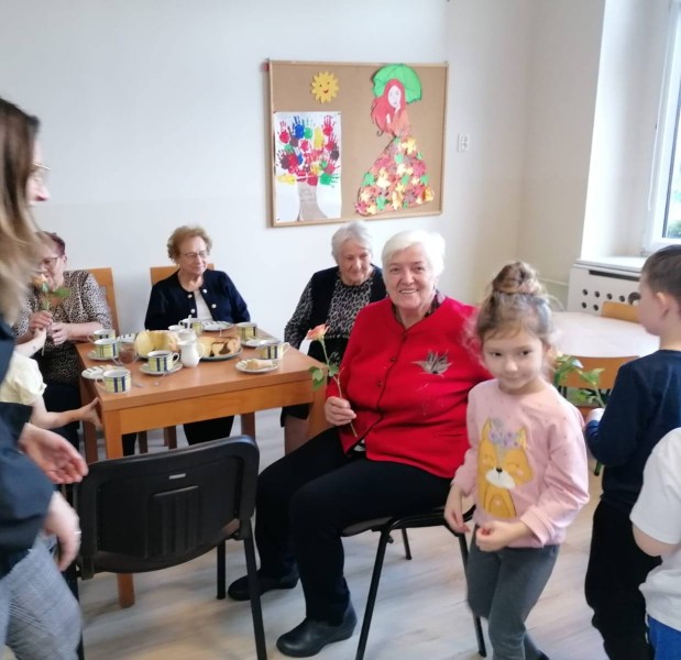 . WrÄczyĹy teĹź podziÄkowania paniom opiekunkom i seniorkom oraz piÄkne róşyczki