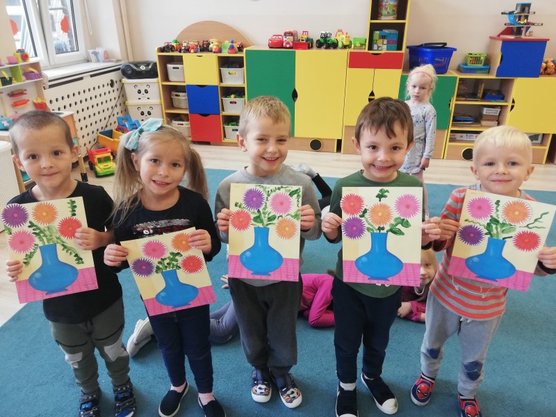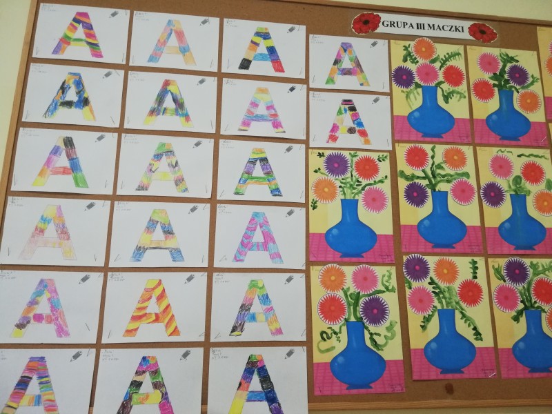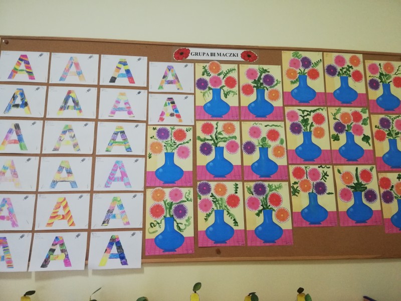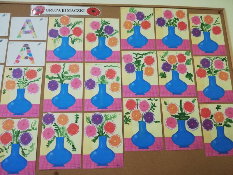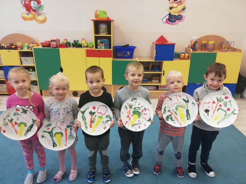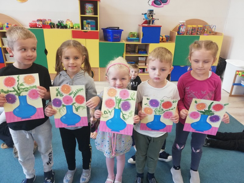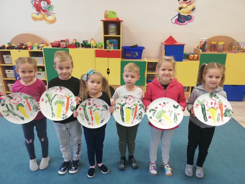 W tym tygodniu MACZKI wykonaĹy przepiÄkne prace plastyczne. Dzieci odbijaĹy warzywa w kolorowych farbach plakatowych tworzÄ c bukiet warzywnych stempli oraz wycinaĹy noĹźyczkami barwne astry i tworzyĹy bukiet jesiennych kwiatĂłw. Obydwie prace sprawiĹy dzieciom wiele zadowolenia i rozwinÄĹy sprawnoĹci manualne.