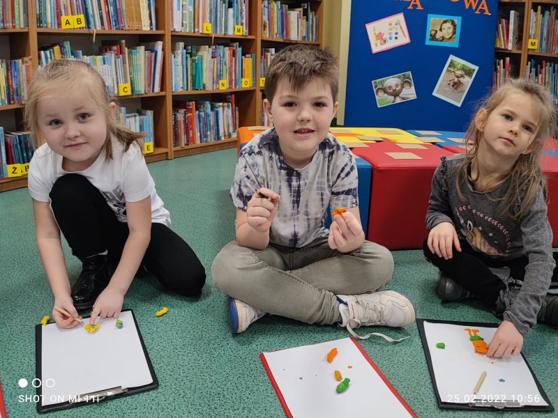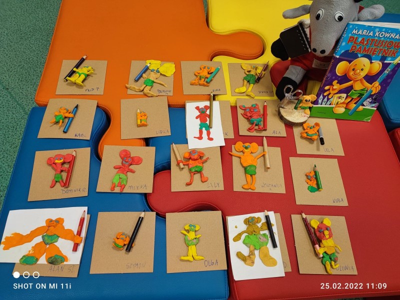 Dzieci na warsztatach upamiÄtniajÄ cych czterdziestÄ rocznicÄ Ĺmierci Marii Kownackiej ulepiĹy z plasteliny przepiÄkne „PLASTUSIE” , ktĂłre wrĂłciĹy z nami do przedszkola a nastÄpnie powÄdrowaĹy wraz z dzieÄmi do domu. Maczki przygotowaĹy wczeĹniej róşnorodne obrazki z postaciÄ „PLASTUSIA” i przekazaĹy je PANIÄ BIBLIOTEKARKÄ w ramach podziÄkowania za tak cudowne zajÄcia.