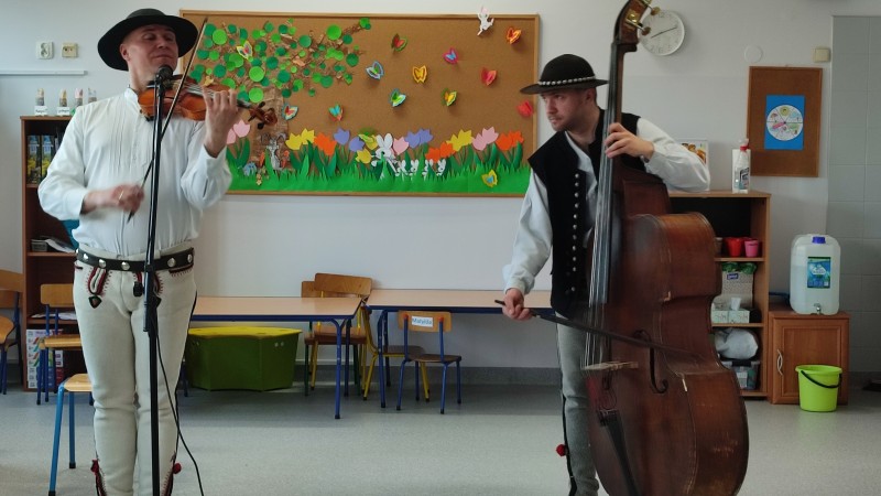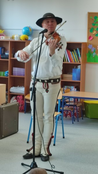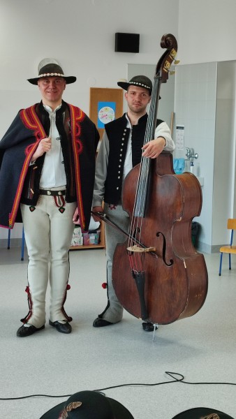 We wtorek 12 kwietnia przedszkole odwiedziĹa Kapela GĂłralska ze Szczyrku. Na tÄ okazjÄ dzieci z grupy MACZKI ubraĹy siÄ w stroje gĂłralskie. Dzieci miaĹy okazjÄ zapoznaÄ siÄ z nazwami instrumentĂłw, strojĂłw i elementami muzyki gĂłralskiej. Muzyka bardzo siÄ dzieciom spodobaĹa i kapele nagrodzili gromkimi brawami.