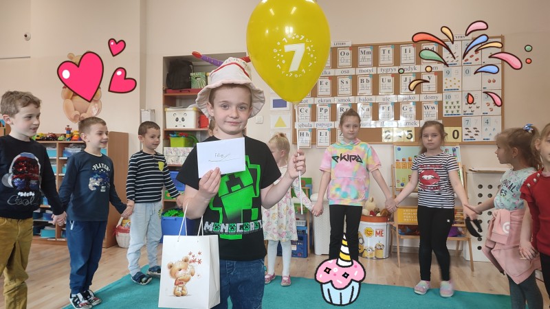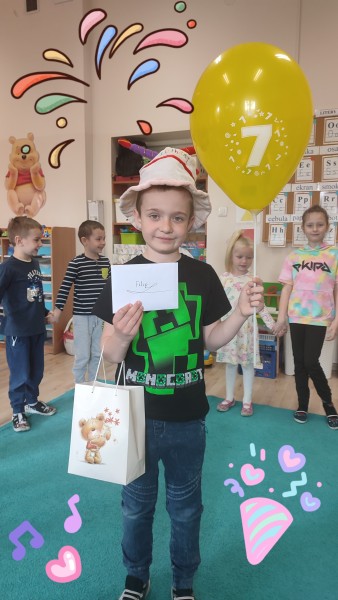 Kolejnym kwietniowym solenizantem w grupie MACZKI jest FILIP P. Nasz solenizant 23.04.2022r obchodziĹa swoje 7 urodziny! Dzieci z grupy odĹpiewaĹy FILIPOWI gĹoĹne STO LAT!! zĹoĹźyĹy Ĺźyczenia ĹźyczÄ