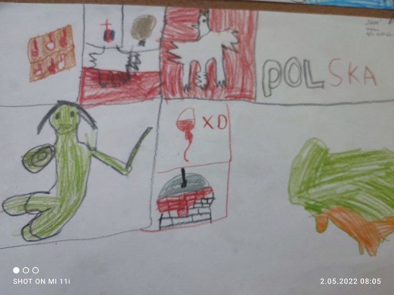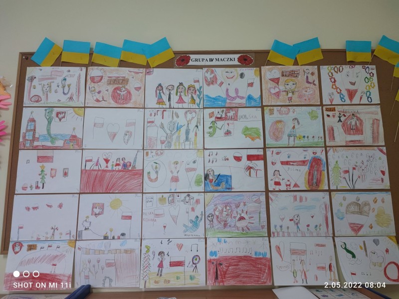 Grupa MACZKI, aby uczciÄ „DzieĹ Flagi” i „Konstytucje 3- Maja” narysowaĹy przepiÄkne rysunki patriotyczne z uwzglÄdnieniem róşnych symboli narodowych.