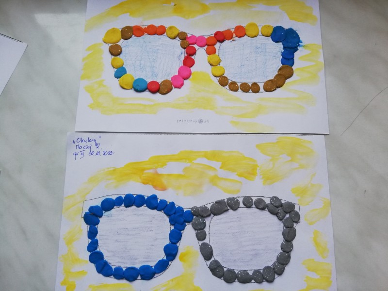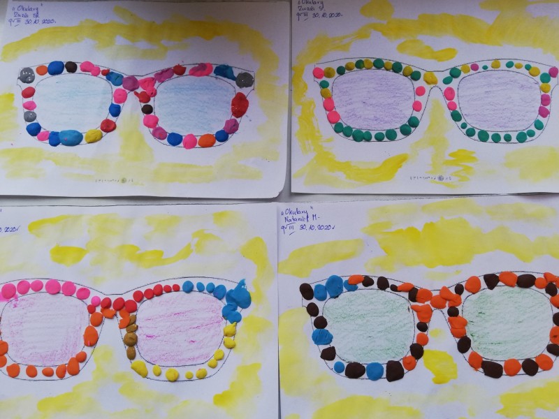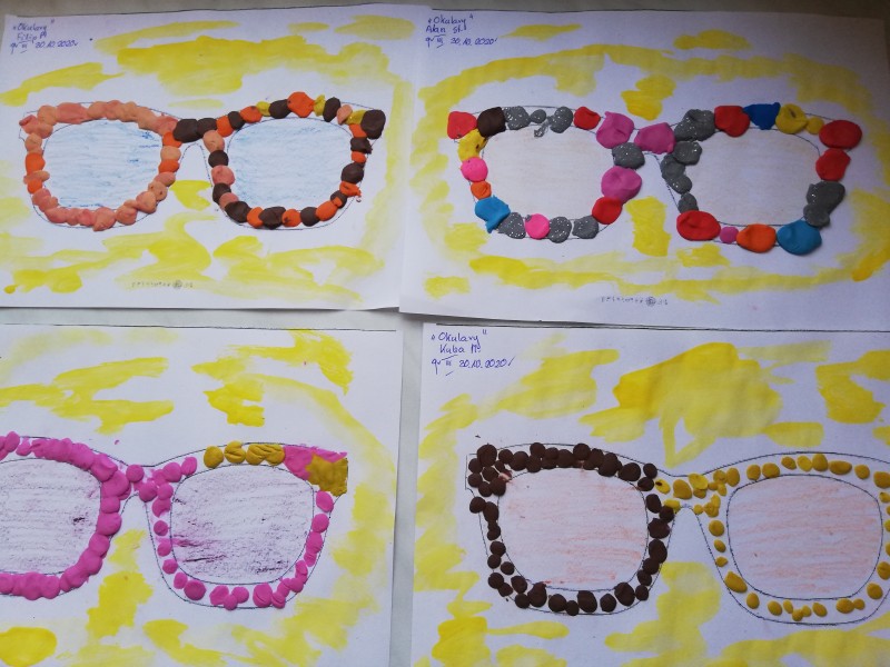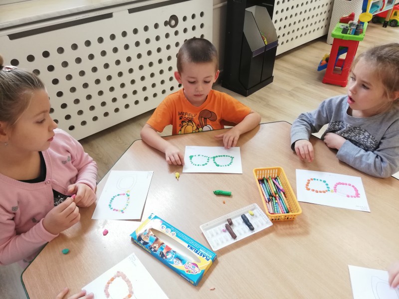 W tym tygodniu MACZKI miaĹy okazjÄ doĹwiadczyÄ istnienia piÄciu zmysĹĂłw czĹowieka. Poznawanie kaĹźde zmysĹu prowadziĹo do wzbogacania doĹwiadczeĹ dzieci. UĹwiadomiĹy sobie, Ĺźe poprzez te zmysĹy czĹowiek poznaje Ĺwiat, ma moĹźliwoĹÄ nauczyÄ siÄ pisaÄ i czytaÄ. ZakoĹczeniem tych doĹwiaczeĹ byĹo wykonanie kolorowych okularĂłw z kuleczek plasteliny.