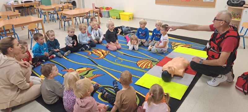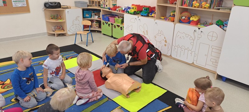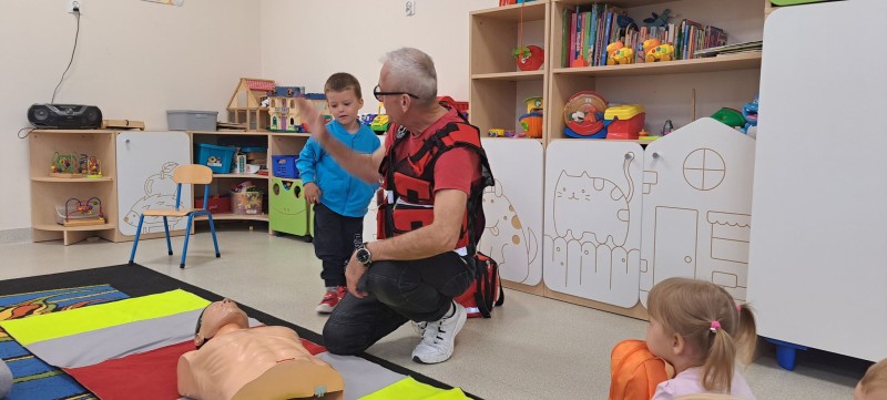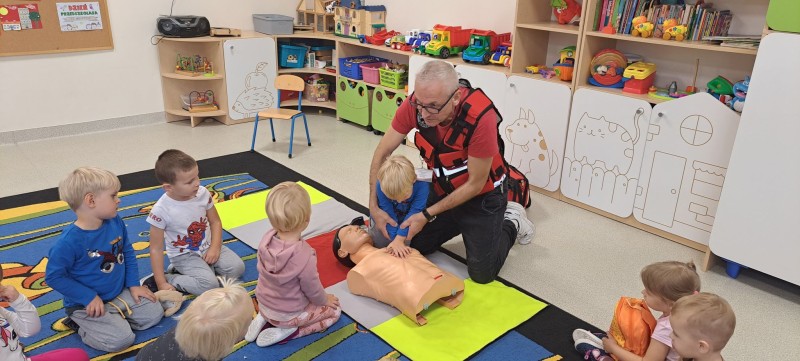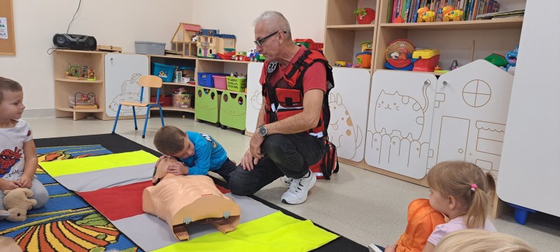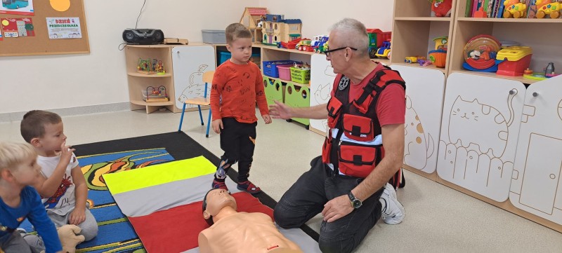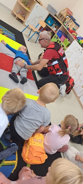 Dnia 20.09. goĹciliĹmy w przedszkolu ratownika medycznego. Dzieci najpierw miaĹy okazjÄ obejrzeÄ strĂłj ratownika i wysĹuchaÄ informacji na temat udzielania pierwszej pomocy; w jaki sposĂłb moĹźna komuĹ pomĂłc zanim przyjedzie pogotowie ratunkowe, jak naleĹźy sprawdzaÄ przytomnoĹÄ osoby poszkodowanej oraz w jaki sposĂłb wzywaÄ pomoc.