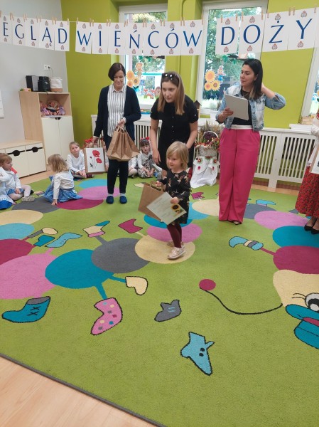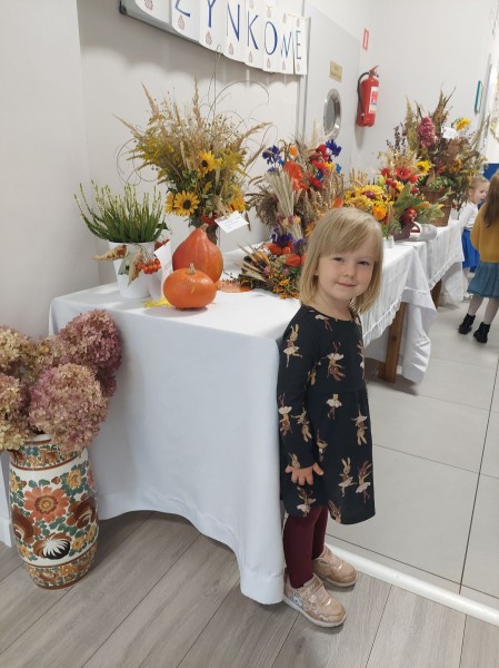 Marcelina Gluzman z grupy Maczki wziÄĹa udziaĹ w tegorocznym „ PrzeglÄ dzie WieĹcĂłw, StroikĂłw i BukietĂłw DoĹźynkowych,” ktĂłry odbyĹ siÄ w Przedszkolu nr 6. Celem konkursu byĹo kultywowanie tradycji zwiÄ zanych z DoĹźynkami oraz rozbudzenie i poszerzenie zainteresowaĹ twĂłrczoĹciÄ ludowÄ . Marcelina zaprezentowaĹa piÄkny bukiet, za co otrzymaĹa dyplom i nagrodÄ. Wszystkie dzieci zdobyĹy I miejsce w konkursie. Gratulujemy!
