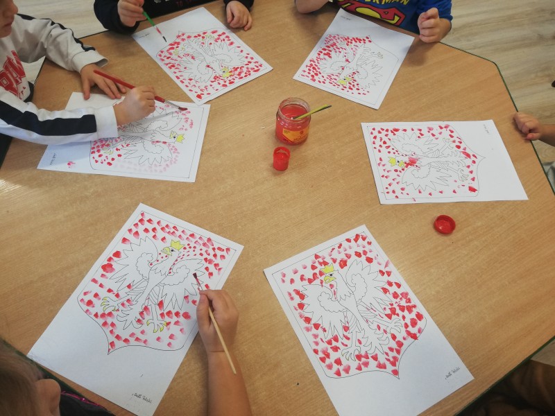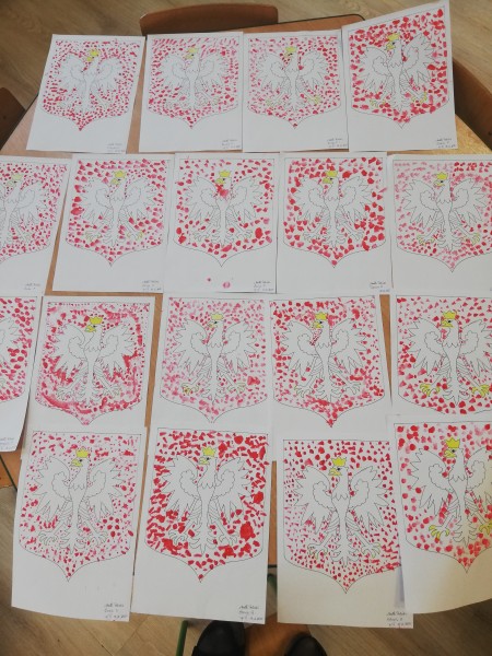11 listopada to data, ktĂłra bardzo mocno wiÄ Ĺźe siÄ z polskoĹciÄ oraz symbolami narodowymi. MACZKI w przed dzieĹ tego ĹwiÄta wykonaĹy godĹo Polski kropkami czerwonymi z farby oraz ozdobiĹy literkÄ T biaĹo-czerwonymi kwiatami. OczywiĹci dzieci nauczyĹy siÄ ĹpiewaÄ hymn Mazurek DÄ browskiego.