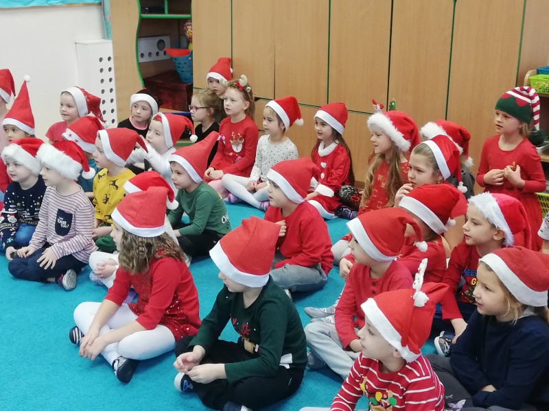 MACZKI z wielkÄ niecierpliwoĹciÄ oczekiwaĹy 4 grudnia wizyty w przedszkolu Ĺw. MikoĹaja. Na tÄ okazjÄ ubraĹy siÄ odĹwiÄtnie w czerwone kolory i w czapeczki. ChÄtnie opowiadaĹy jak wyglÄ da zaprzÄg Ĺw. MikoĹaja i jakie imiona majÄ jego renifery. W oczekiwaniu na goĹcia zebraĹy siÄ w grupie Stokrotek. Wreszcie MikoĹaj siÄ pojawiĹ i powitaĹ dzieci gromkim sĹowami HoĹ-Hol-HoĹ!!