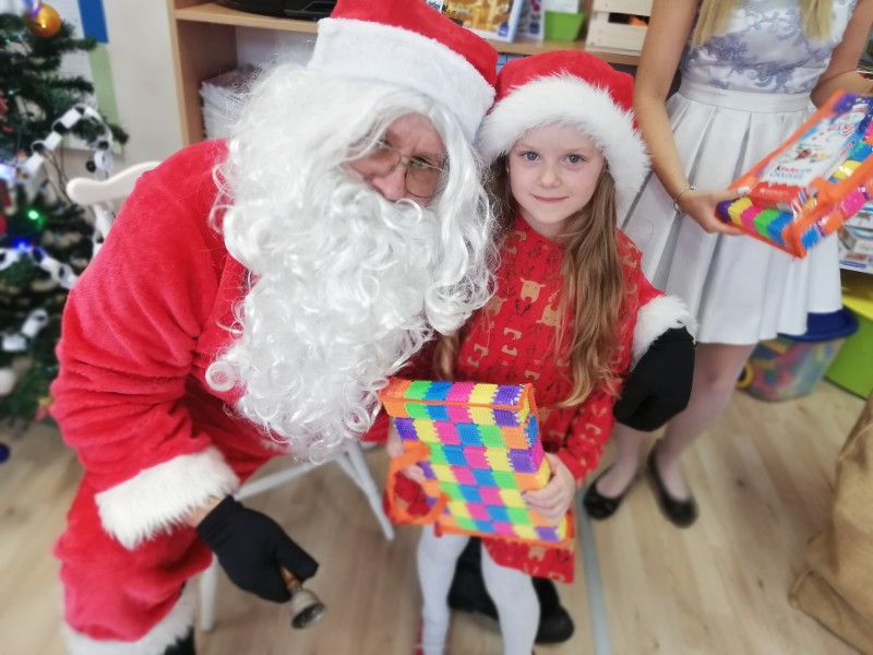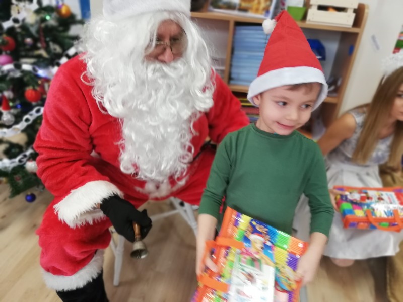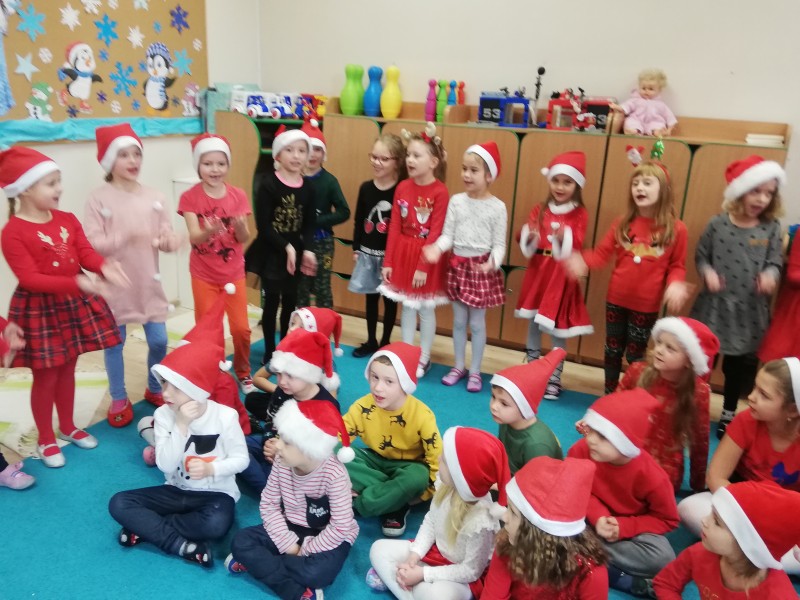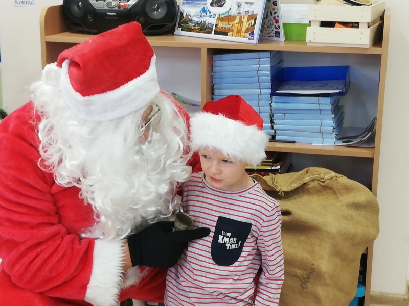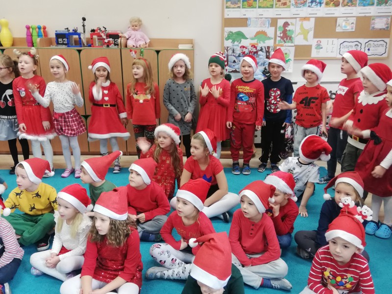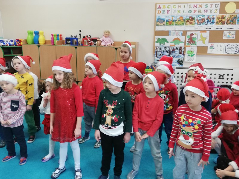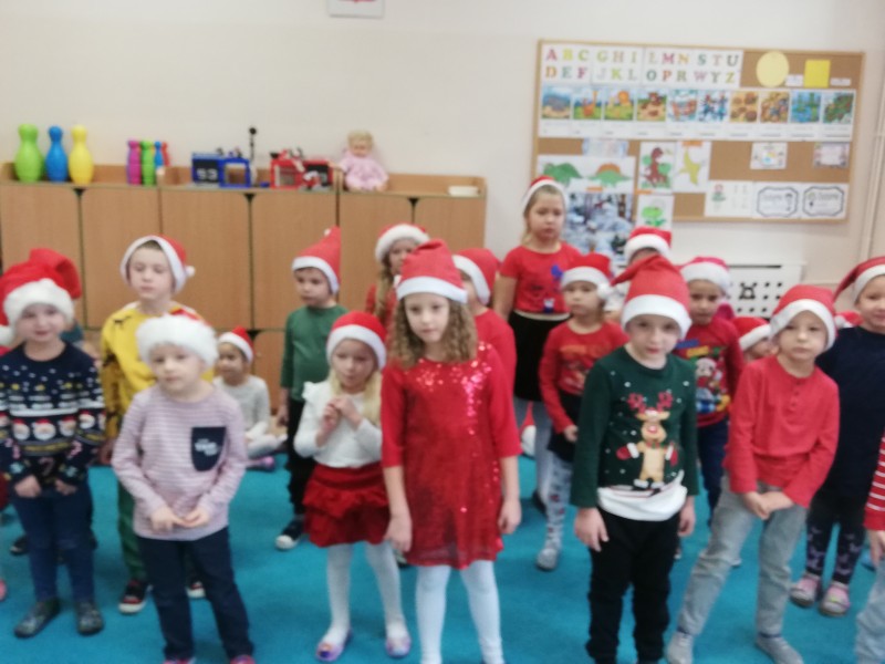 Ĺw. MikoĹaj zapytaĹ dzieci co lubiÄ robiÄ w przedszkolu, czego siÄ uczÄ i czy bywajÄ grzeczni !!! ZaprosiĹ chÄtne dzieci do rozmowy. W Maczkach z MikoĹajem rozmawiaĹ Filipek K. NastÄpnie dzieci zaĹpiewaĹy piosenkÄ o MikoĹaju i wyrecytowaĹy wierszyk. GoĹÄ byĹ bardzo zadowolony i bardzo podobaĹ mu siÄ wystÄp. NastÄpnie rozdaĹ dzieciom prezenty.