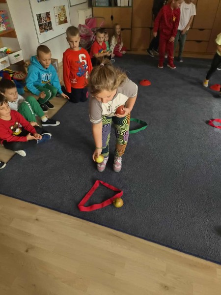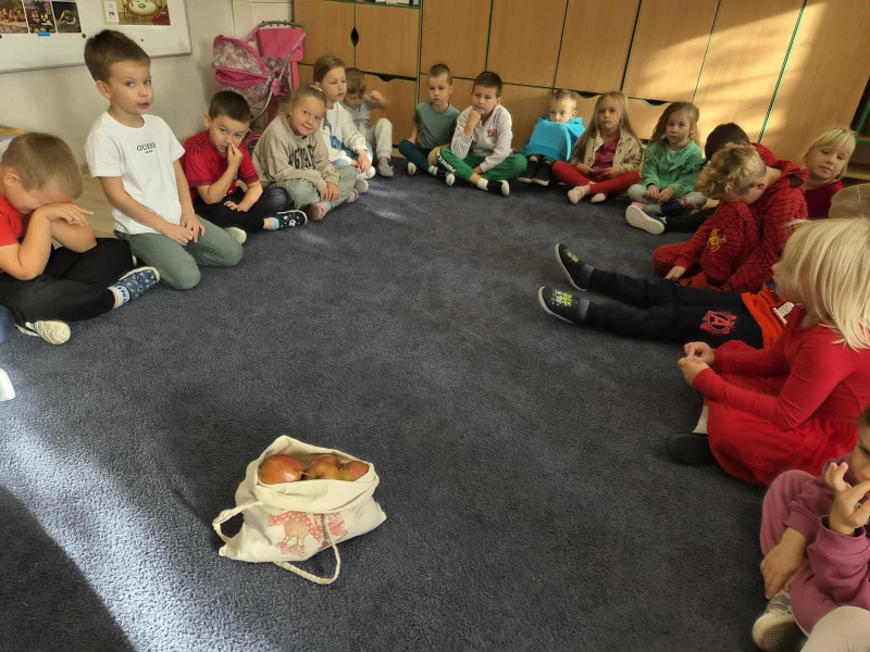 26 wrzeĹnia w naszym przedszkolu obchodziliĹmy DzieĹ JabĹka. Z tej okazji spotkaliĹmy siÄ z grupÄ Maczki, z ktĂłrÄ wspĂłlnie braliĹmy udziaĹ w róşnych konkurencjach sportowych z wykorzystaniem jabĹek. Dzieci poznaĹy znaczenie tego ĹwiÄta i dowiedziaĹy siÄ, dlaczego jabĹka sÄ tak waĹźne w naszej diecie.