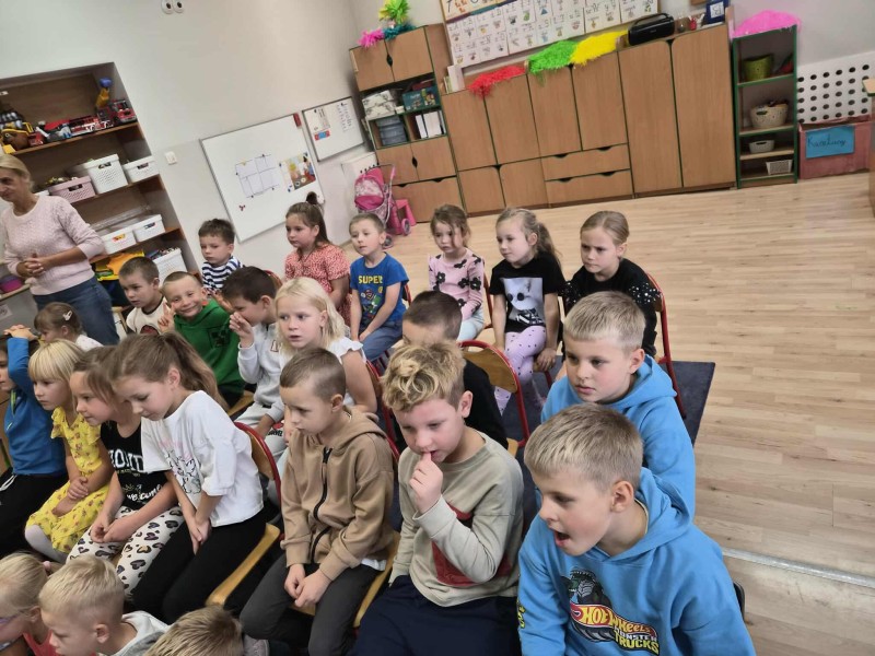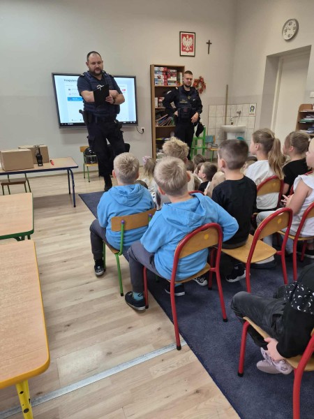 Na zakoĹczenie dzieci otrzymaĹy niespodzianki oraz podziÄkowaĹy Funkcjonariuszom za spotkanie wrÄczajÄ c ksiÄ ĹźeczkÄ ze swoimi pracami ;).