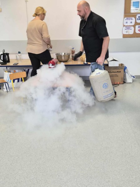 MiaĹy okazjÄ sprawdziÄ wĹaĹciwoĹci suchego lodu oraz ciekĹego azotu. ByĹ spacer po chmurach, wulkan z piany, czarodziejski balon oraz przysmaki z kuchni molekularnej - smocze chrupki, dymiÄ