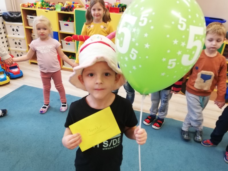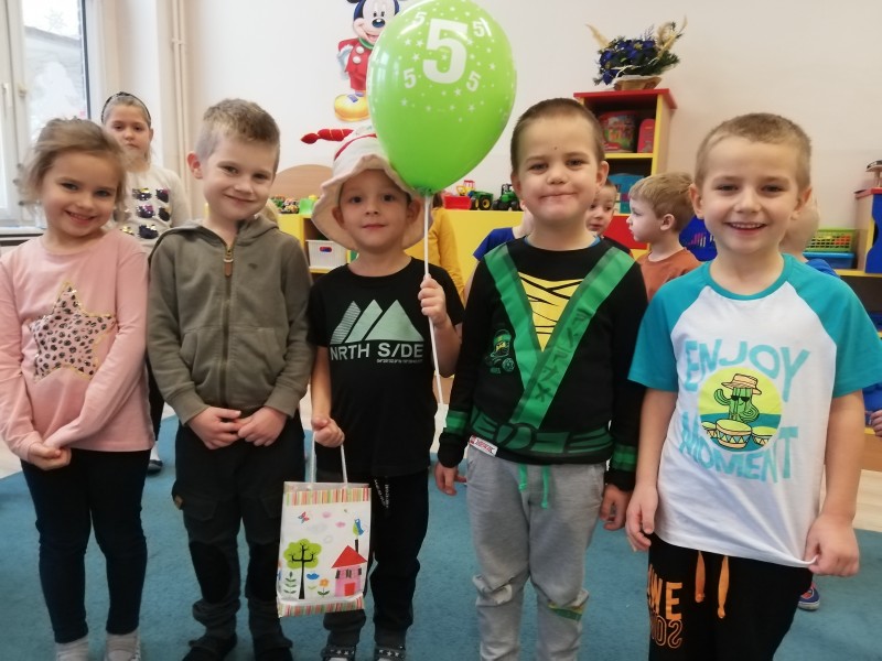 3 grudnia swoje 5 urodziny obchodziĹ ALANEK St. Koledzy i koleĹźanki z grupy Mczki odĹpiewali solenizantowi gromkie STO LAT!! zĹoĹźyli Ĺźyczenia, ĹźyczÄ c duĹźo zdrowia, uĹmiechu i piÄknych prezentĂłw!! Solenizant otrzymaĹ kartkÄ urodzinowÄ i balonik z cyferkÄ 5.Na koniec ALANEK poczÄstowaĹ swoich kolegĂłw z grupy sĹodkimi cukierkami.
