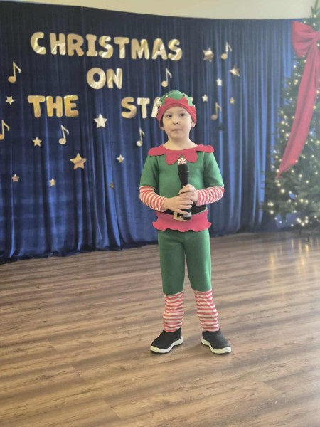 17.12.2025 r. Czarek MieĹźyĹski reprezentowaĹ nasze przedszkole w konkursie angielskiej piosenki ĹwiÄ tecznej: "Christmas on the stage" organizowanym przez Przedwszkole nr 9 MiĹ Usztek w Ostrowie Wlkp.