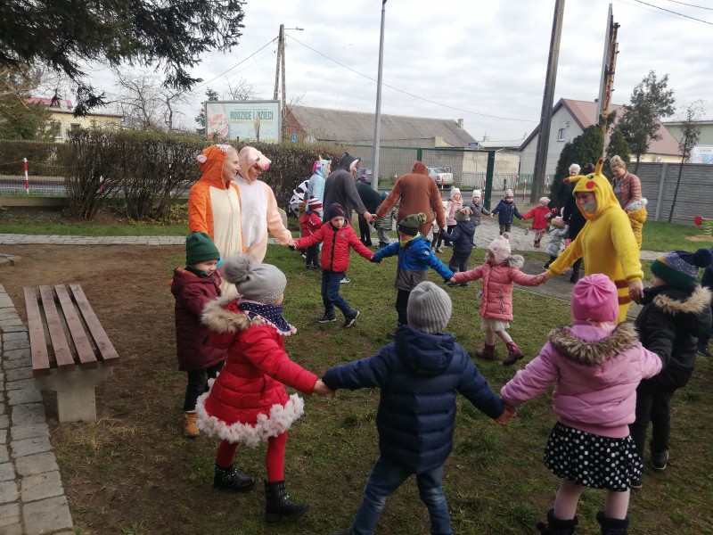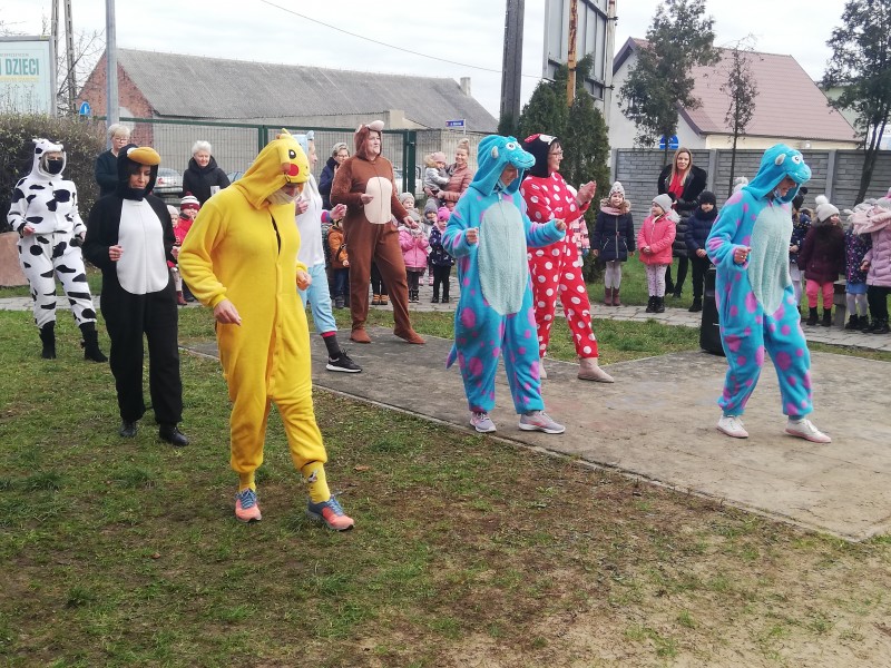 Ukoronowaniem piÄ tkowego dnia byĹ niezwykĹy prezent jaki spotkaĹ tego dnia dzieci ze wszystkich grup. Przedszkole odwiedziĹy Kolorowe ZwierzÄ tka (grupa rodzicĂłw z Raszkowa) ktĂłre przedstawiĹy bardzo energetyczny taniec. Po pokazie zwierzÄ tka zaprosiĹy dzieci do wspĂłlnych taĹcy. Zabawa byĹa super! Bardzo podobaĹa siÄ wszystkim dzieciom. Dzieci nagrodziĹy artystĂłw Z Raszkowa gromkimi brawami!!!