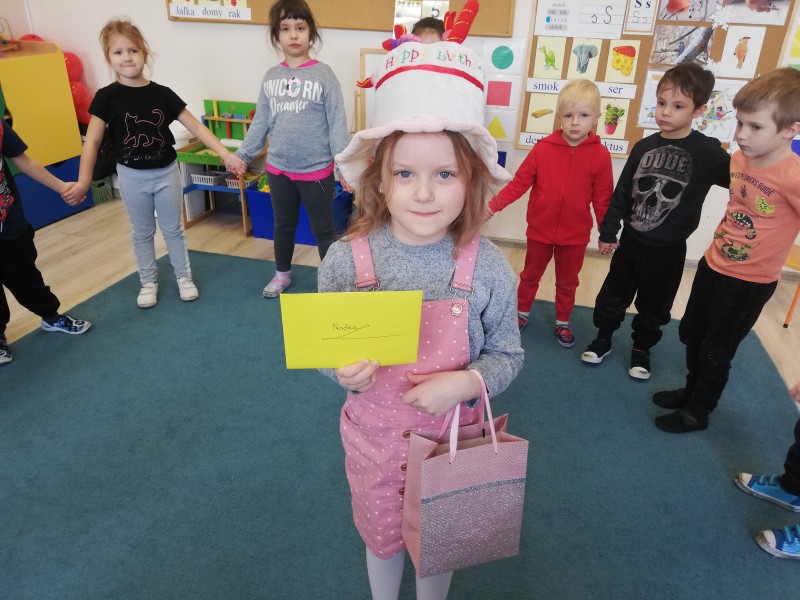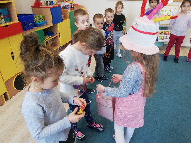 8 stycznia w piÄ tek swoje 6 urodziny obchodziĹa NADIA. Z tej okazji dzieci z grupy MACZKI odĹpiewaĹy solenizantce 100 LAT. zĹoĹźyli Ĺźyczenia, ĹźyczÄ c duĹźo zdrowia, uĹmiechu i piÄknych prezentĂłw!! Solenizantka otrzymaĹ kartkÄ urodzinowÄ i balonik z cyferkÄ 6.Na koniec NADIA poczÄstowaĹa swoich kolegĂłw z grupy smacznymi cukierkami.