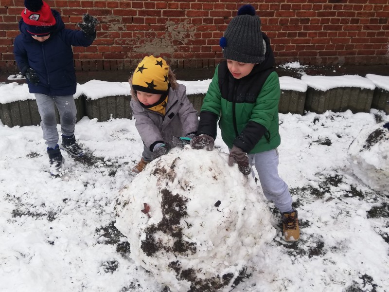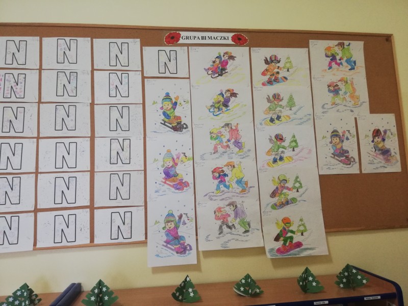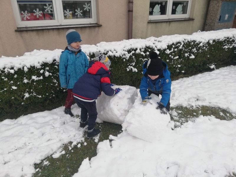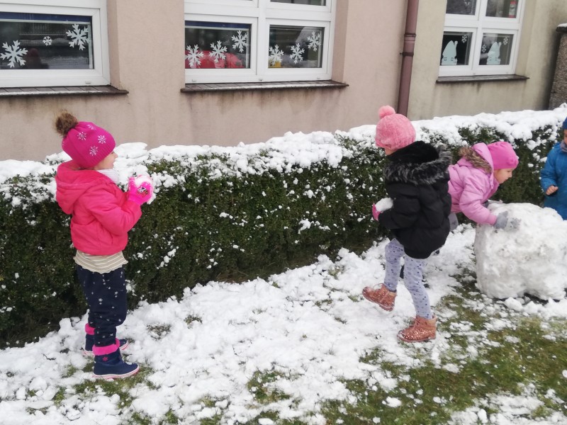 W tym tygodniu tematykÄ zajÄÄ u MACZKĂW byĹy ,,Zabawy na Ĺniegu". Dzieci wykonaĹy piÄkne prace o tej tematyce, poznaĹy literkÄ N jak narty. Ku radoĹci dzieci zaczoĹ padaÄ Ĺnieg. NapadaĹo go tyle, Ĺźe dzieci wyszĹy na plac aby siÄ nim pobawiÄ. RadoĹci nie byĹo koĹca, lepienie kul byĹo bardzo fajnÄ frajdÄ .