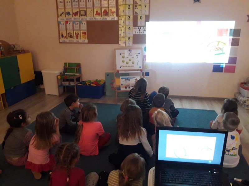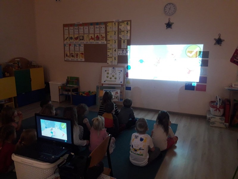 Po obejrzeniu filmu byĹa przeprowadzona krĂłtka pogadanka na temat bezpiecznych zabawach na Ĺniegu. MACZKI przepiÄknie wypowiadaĹy siÄ i rozwiÄ zywaĹy zagadki zwiÄ zane z filmem.